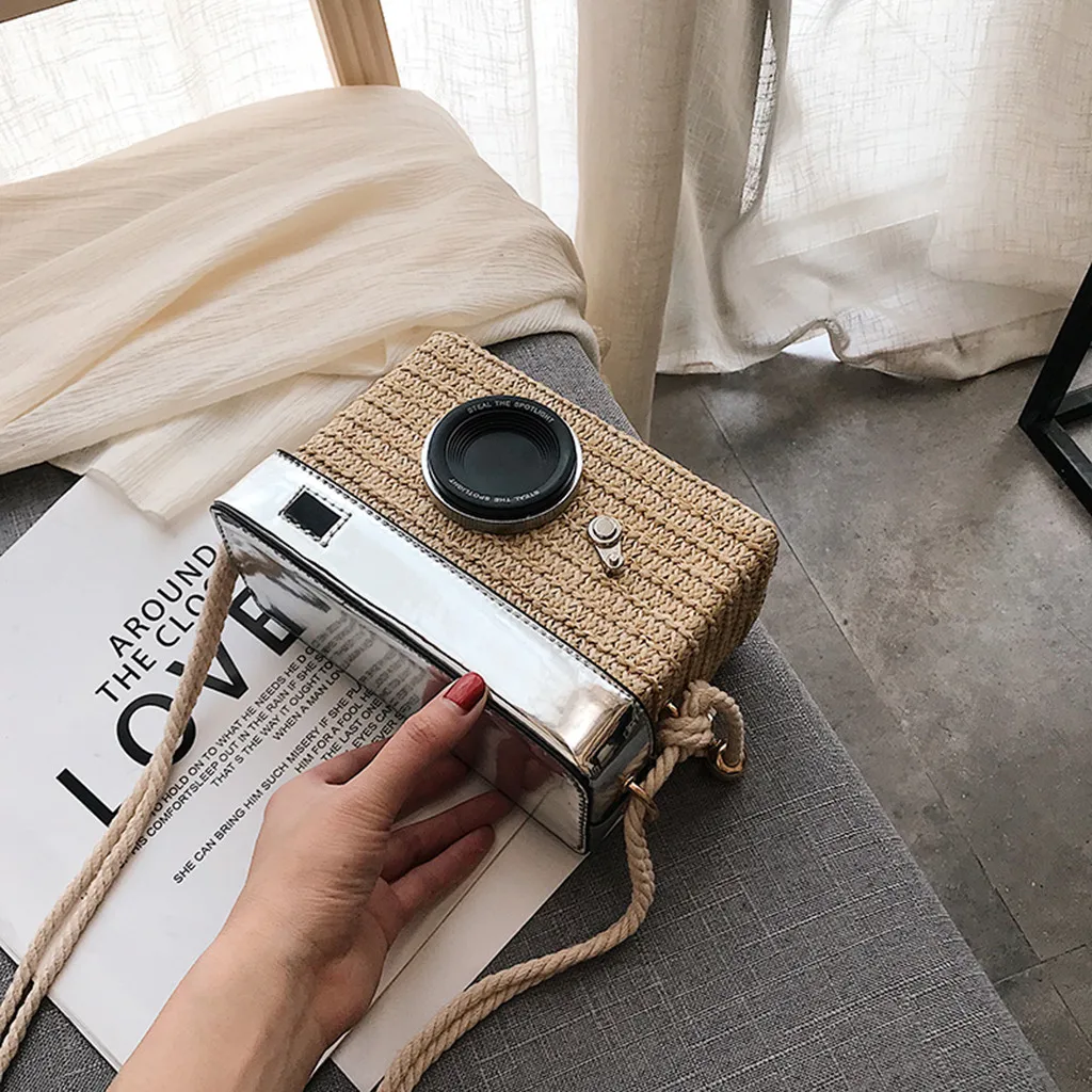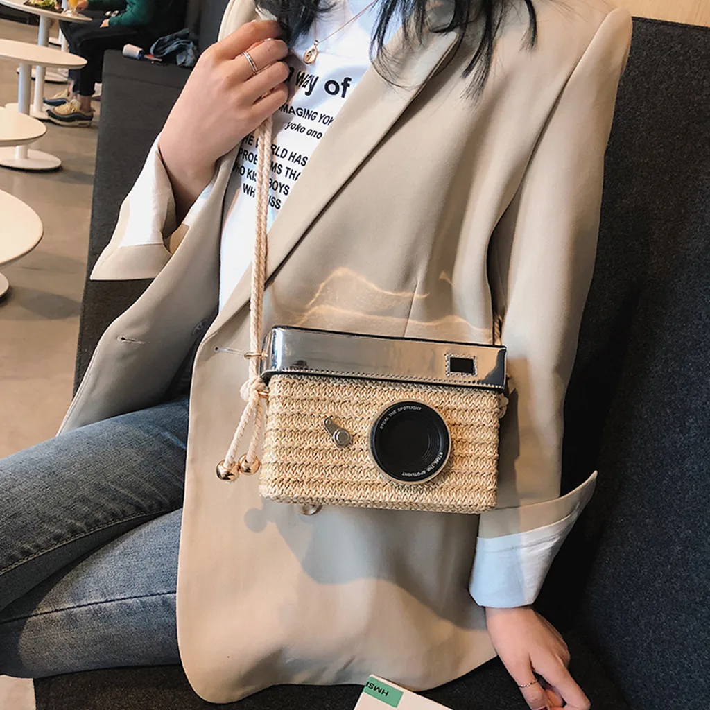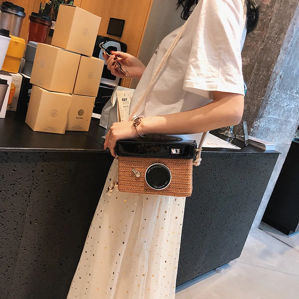 Женская сумка Модель камеры соломенное ведро сумка-мессенджер квадратная сумка Пляжная простая и универсальная индивидуальная креативная уникальная сумка для отдыха