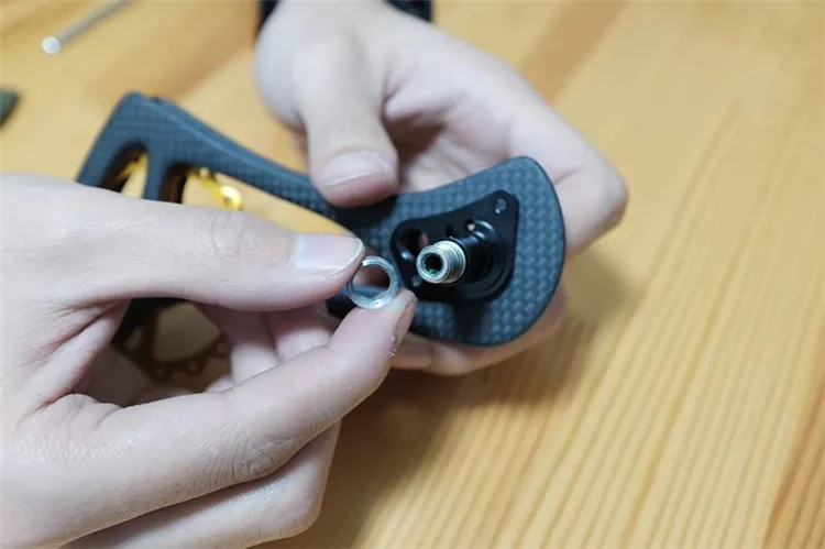 6. Возьмите 17 т карбоновый шкив колеса клетки, используйте № 2 шестигранный ключ Удалить сплав винт на задней части шкива колеса клетки.