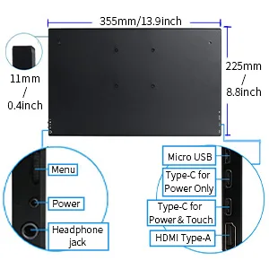 【Монитор USB C: два порта Type-C, верхний тип C для источника питания и среднего типа C для питания и сенсорного и видео, экономия пространства и удобство использования. Оснащен портом HDMI при условии подключения устройств к монитору. С 3,5 мм разъем и встроенный динамик.