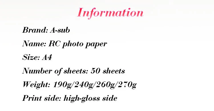 A4 водостойкая струйная печать RC фотобумага 190 г/240 г/260 г для высококлассной фотографии 50 листов