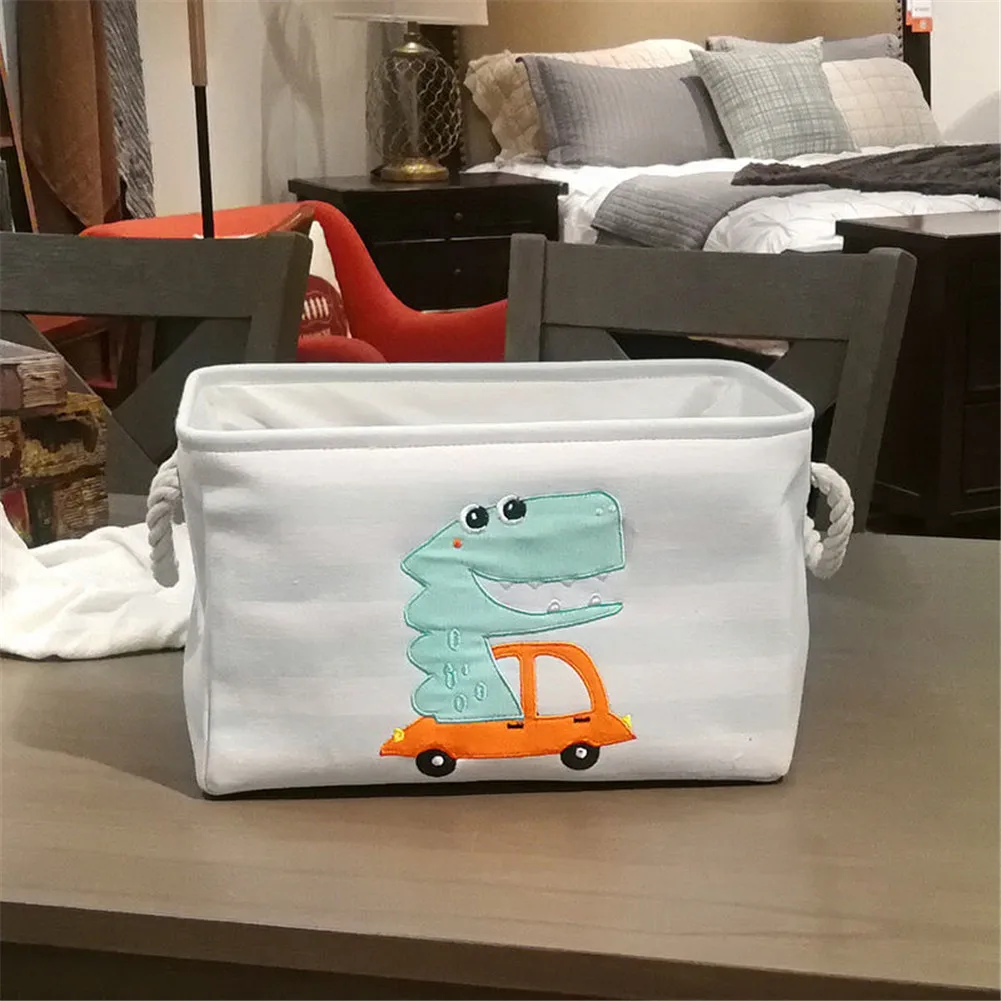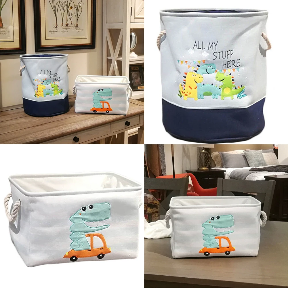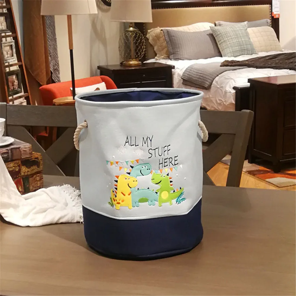 Тканевая корзина для белья, Сумка с вышивкой, холст, лен, динозавр, мультяшная корзина для хранения холста, грязная одежда, домашние Органайзеры