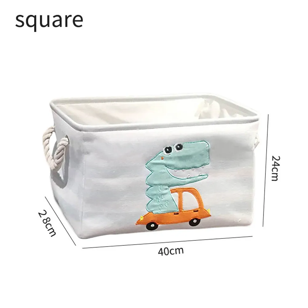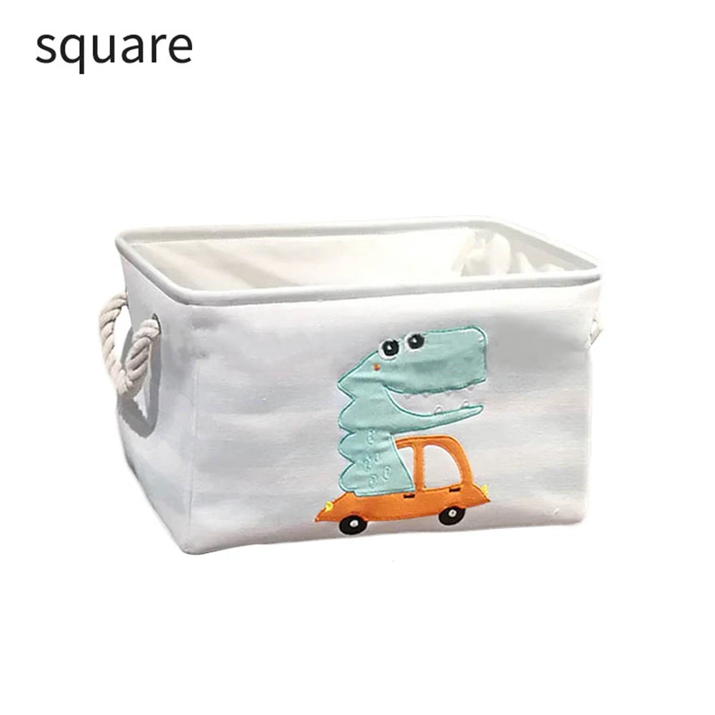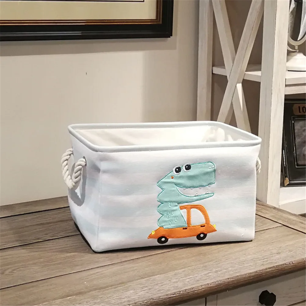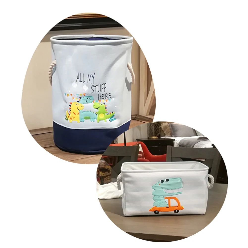 Тканевая корзина для белья, Сумка с вышивкой, холст, лен, динозавр, мультяшная корзина для хранения холста, грязная одежда, домашние Органайзеры
