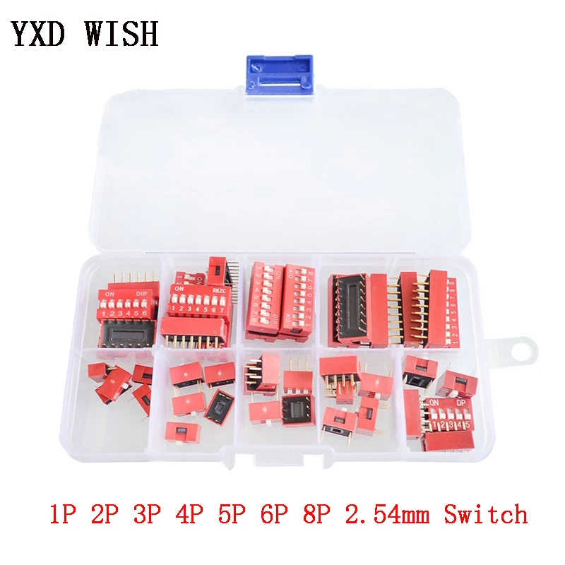 35 шт./кор. Dip-переключатель комплект на 1, 2, 3, 4, 5, 6, 8, таким образом, 2,54 мм тумблер красный оснастки переключателей каждые 5 шт. 1P/2P/3P/4P/5P/6P/8P переключатель