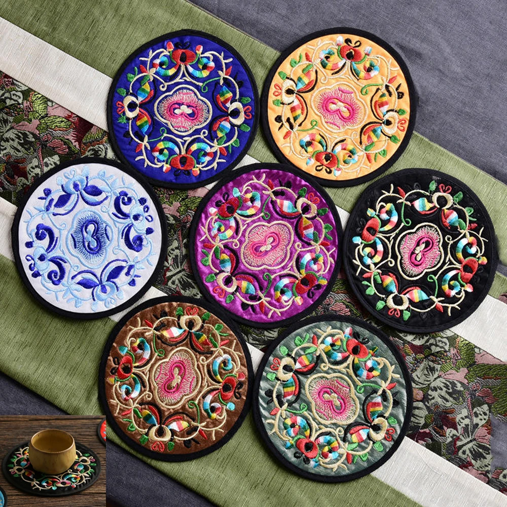 16 типов китайская креативная круглая скатерть стаканчик с вышивкой коврики круглые подставки для кружек кофе коврик для посуды прочный коврик
