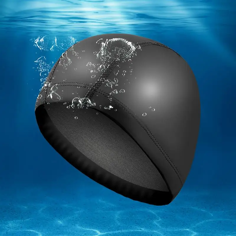 Шапочка для плавательного снаряжения изготовлена из ПУ, может защитить уши и волосы сухими. Он был прочным и гибким, с использованием высококачественных 100% PU материалов. Вы можете надевать его и наслаждаться плаванием.
