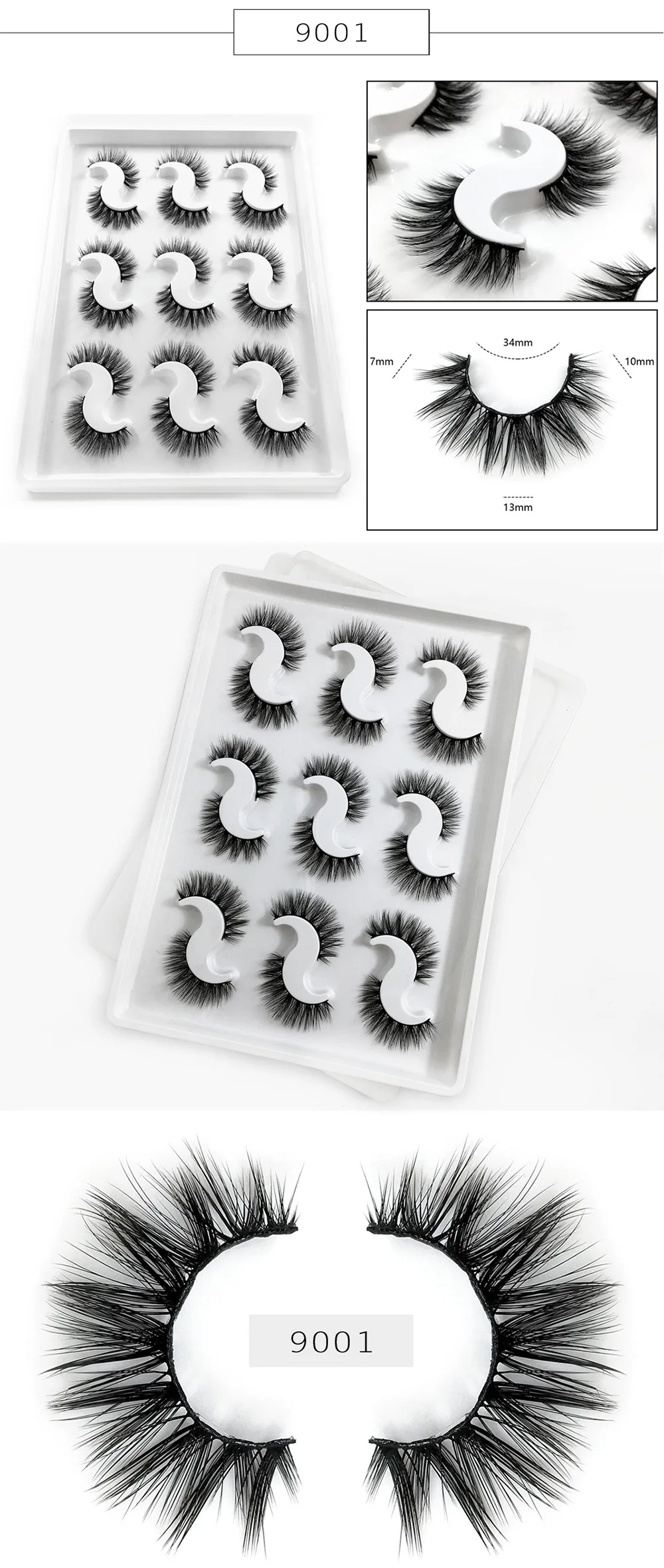 9 пар ресниц, натуральные длинные 3D ресницы из искусственной норки, толстые, ручная работа, полная полоска, ресницы, объемные, мягкие, норковые ресницы, накладные ресницы