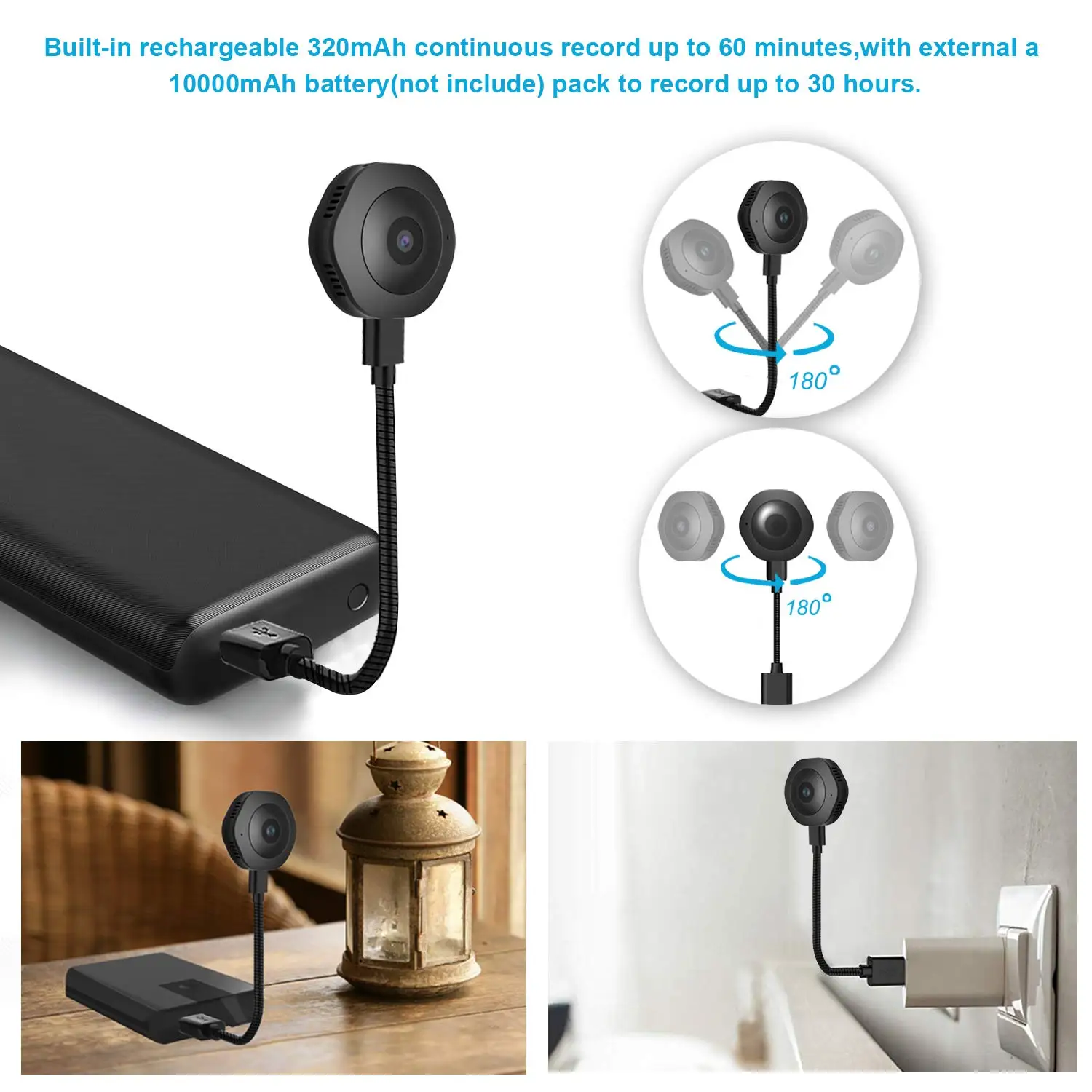 1. Новейшая мини-камера Wi-Fi: Беспроводное подключение Wi-Fi (только 2,4 ГГц) поддерживает телефон, вы можете транслировать все ваши видео через приложение для загрузки «COLACAM» (доступно IOS и Android) для удаленного просмотра, когда вы выходили из дома. 2. Маленькая камера используется в любом месте: самая маленькая камера в мире (1,5*0,59 дюйма, 0,53 унций) со встроенной перезаряжаемой камерой 320 мА · ч, поддерживающей непрерывную запись и мощным магнитом в камере с задней стороны. 3. Качество видео 1080P HD и широкий объектив: Full HD 1920x1080P 30fps качество видео и ультра тонкий размер, потоковое видео с высоким разрешением обеспечивает четкое изображение с более подробной информацией, чтобы узнать, что происходит, когда вас нет. Он также поддерживает циклическую запись и воспроизведение с локальной sd-картой (до 64G, не входит в комплект). 4. Ультра HD ночное видение: с 6 скрытыми инфракрасными светодиодами без освещения, записывает четко как в дневное время, так и в полной темноте с ночным визуальным диапазоном до 15-20 футов. 5. Датчик движения няня камера: Интеллектуальное обнаружение движения и приложение push-уведомление, при обнаружении движения, эта камера будет делать снимок и толкать сообщение на ваш телефон через приложение. Вы не пропустите ни одного идеального момента.