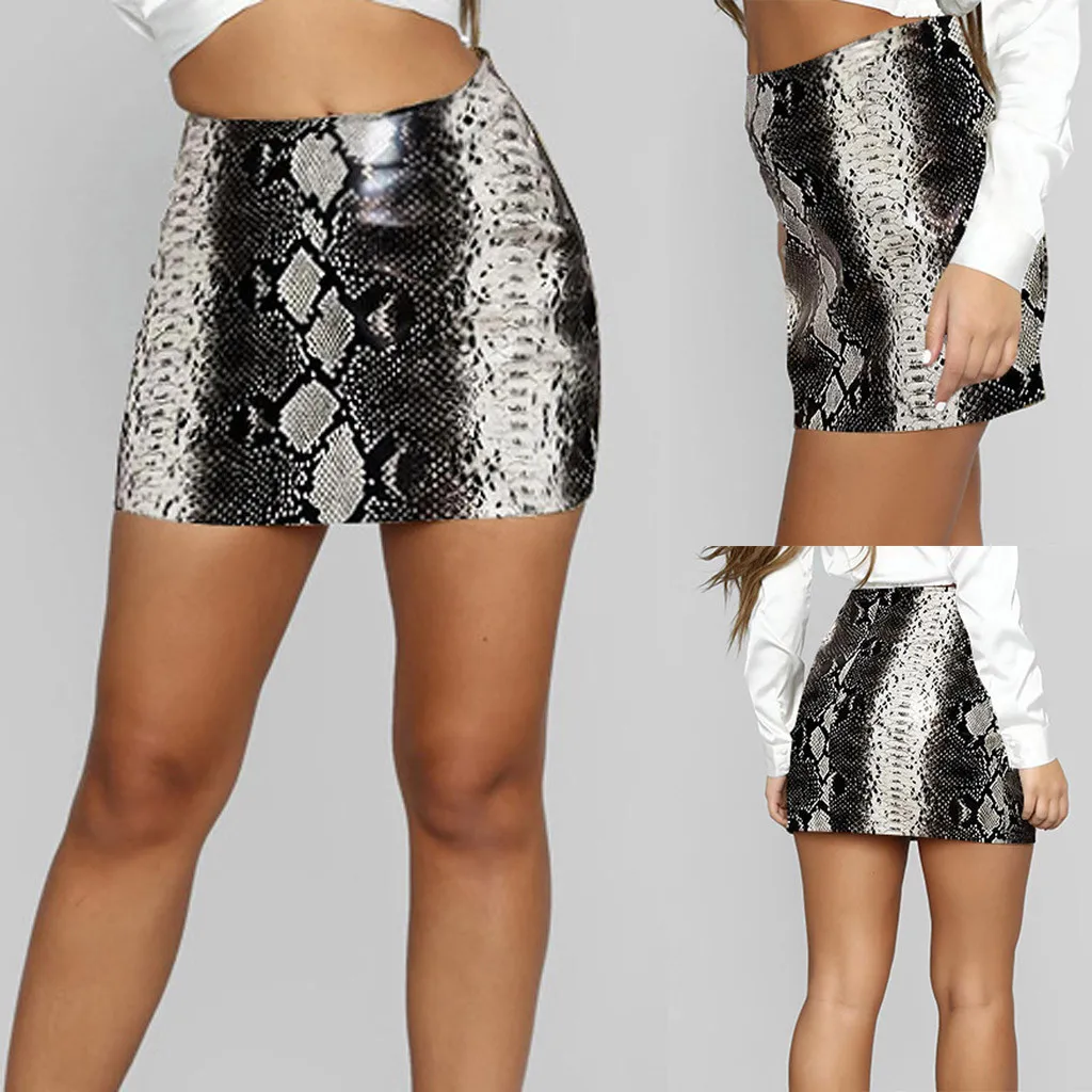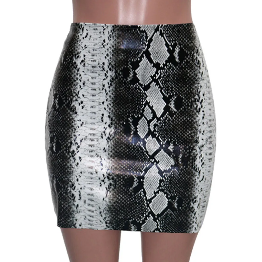 Женская юбка, модная, сексуальная, со змеиным принтом, на молнии, тонкая, короткая, кожанная, Мини юбка, 2020, летняя, трапециевидная, Falda, женская, Saia