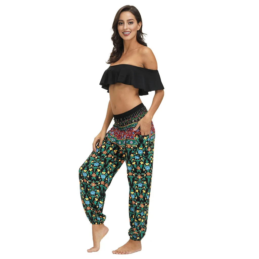 Спортивный костюм с цветочным принтом, с высокой талией, для женщин, для йоги, свободные штаны, бесшовный, пуш-ап, для фитнеса, бега, легинсы, Easticity, штаны для спортзала