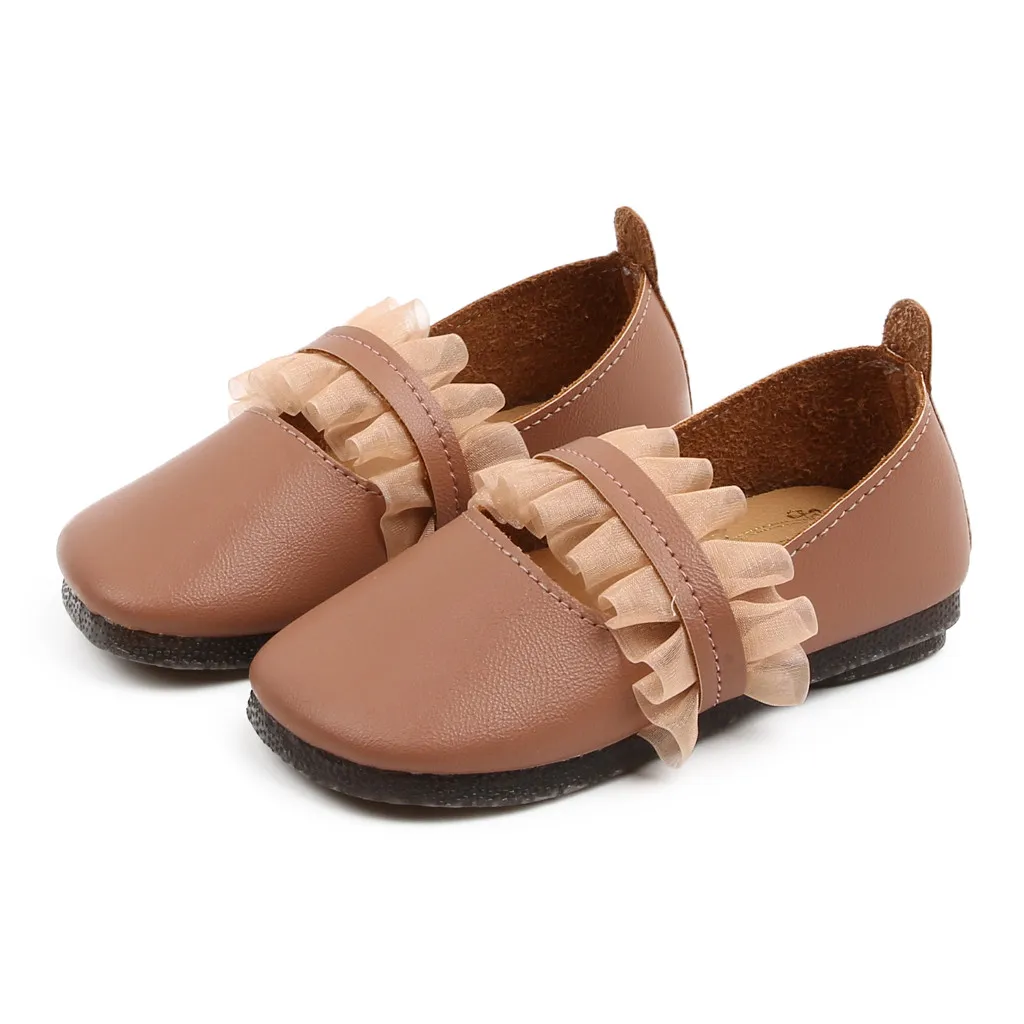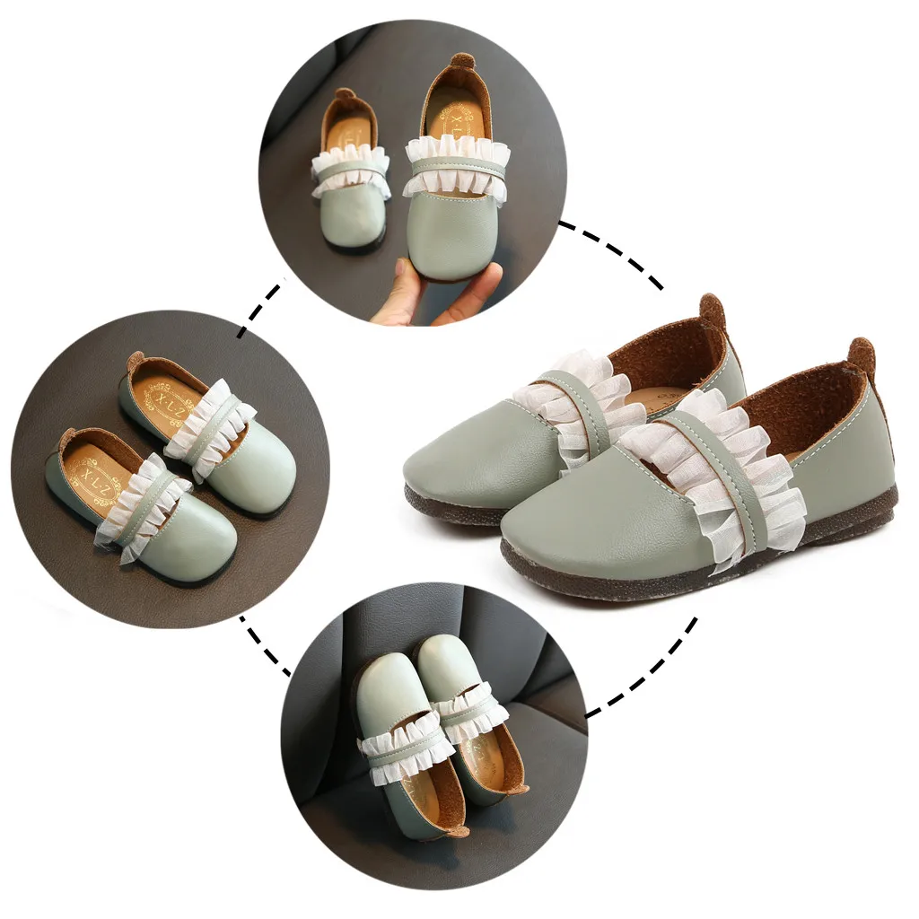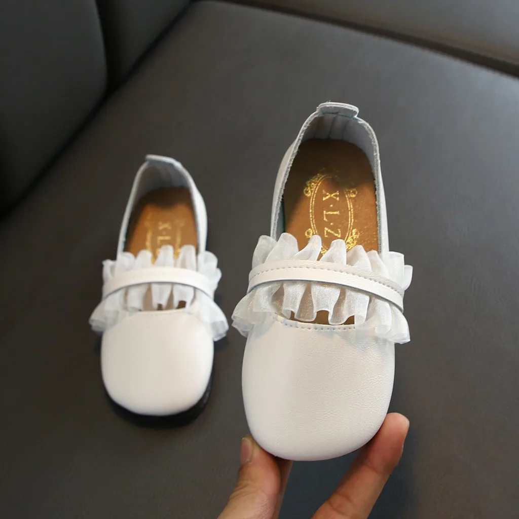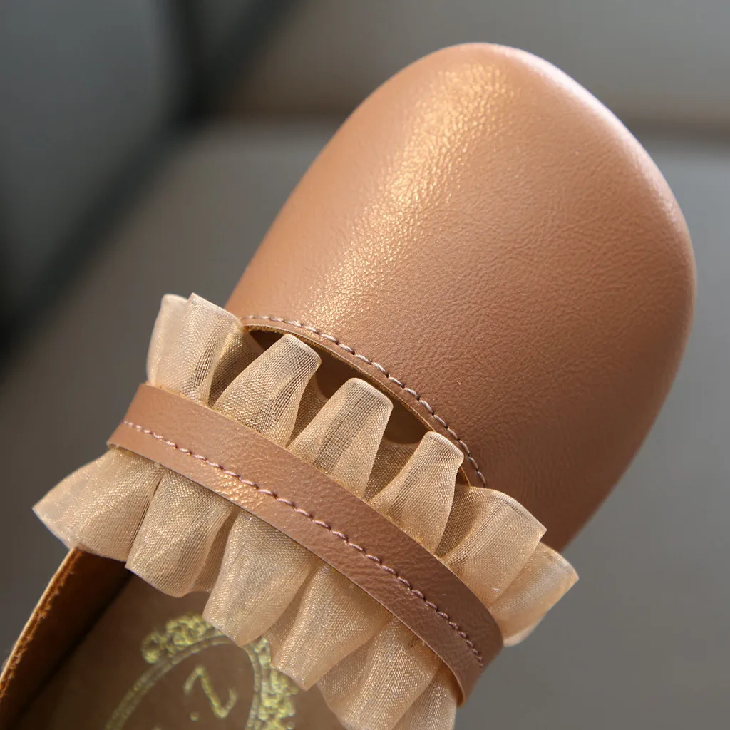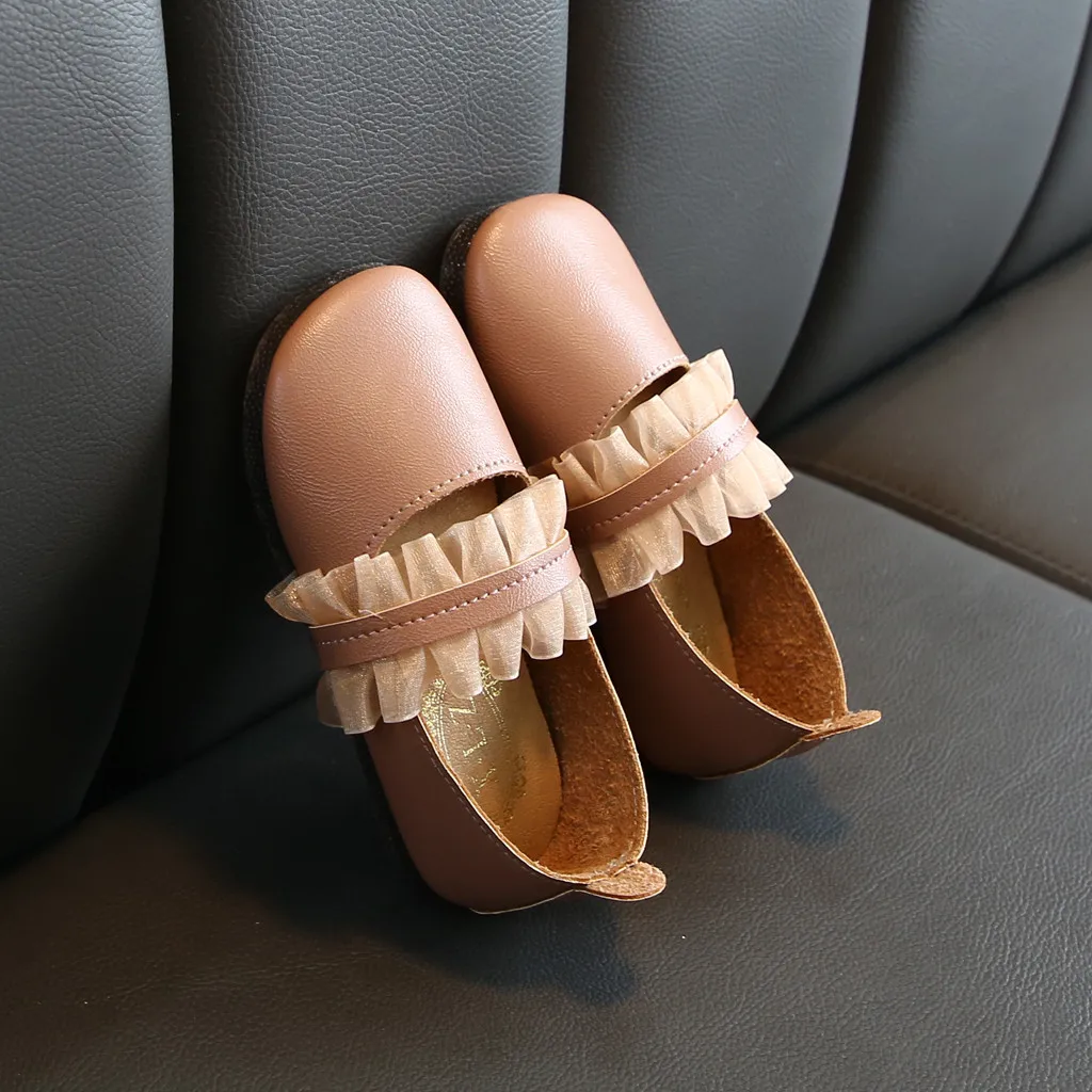 Кожаные туфли для маленьких девочек; Вечерние туфли принцессы с кружевом; Тонкие туфли; Летние Нескользящие сандалии из мягкой кожи