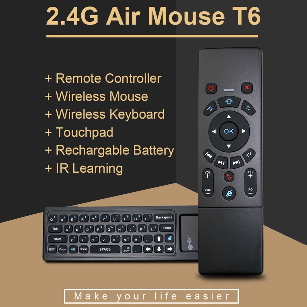 5. Мини-клавиатура, воздушная мышь, комбинация дистанционного управления, с мультимедийными кнопками управления, легко наслаждаться жизнью.