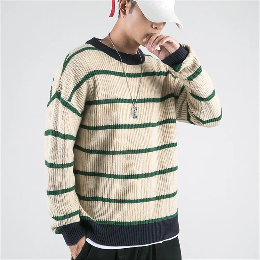 Новые модные мужские вязаные пуловеры в Корейском стиле, повседневные Полосатые свитера с длинными рукавами, мужская верхняя одежда, одежда в стиле хип-хоп, трикотаж