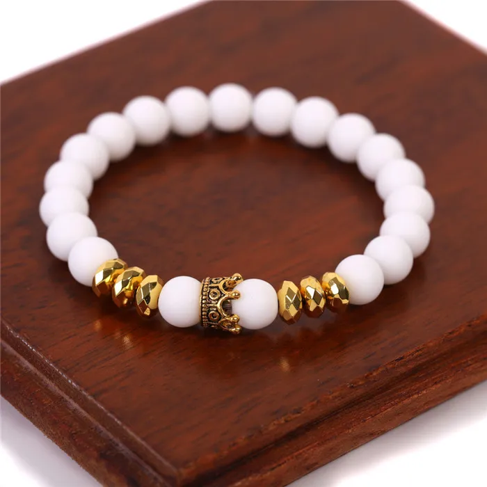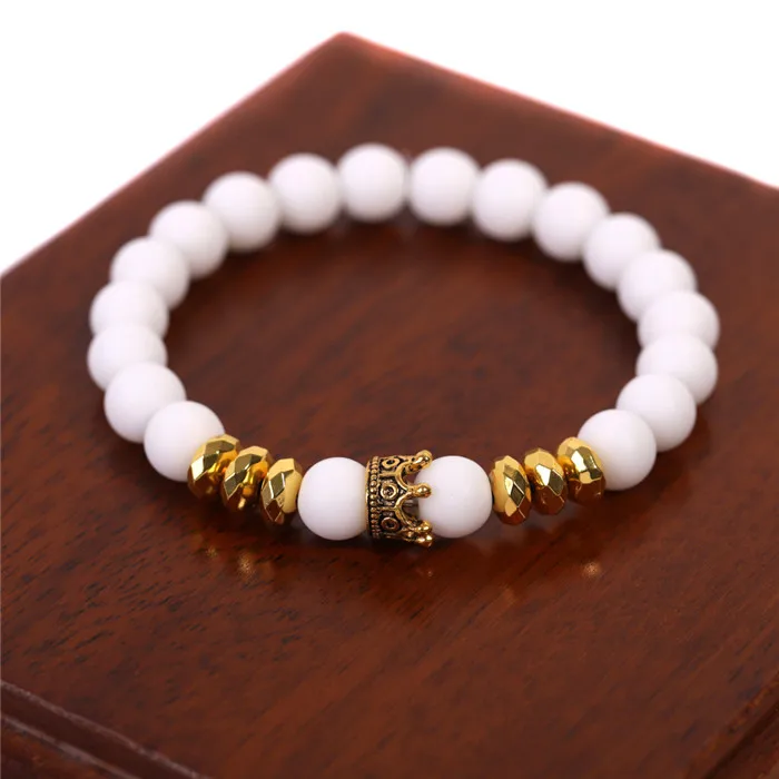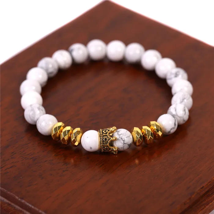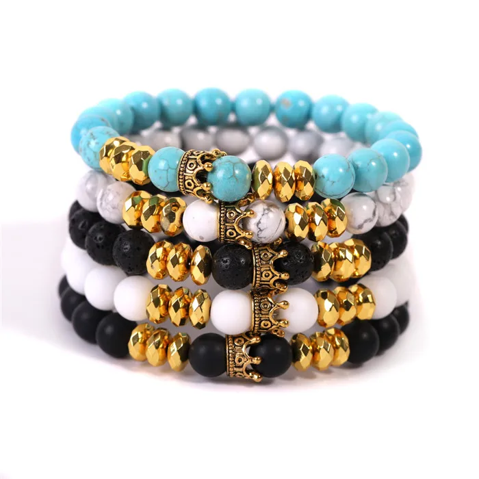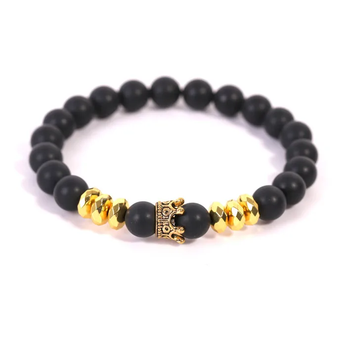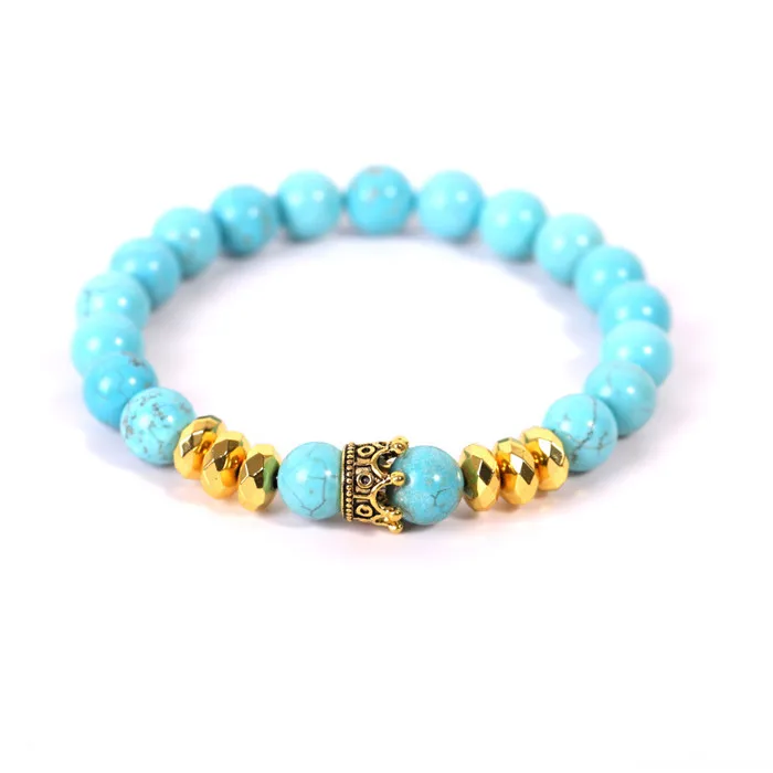 6 шт. горячая Распродажа браслет с короной из натурального камня 8 мм бусины Голубой Бирюзовый матовый черный Лава Рок амулет медитация для изготовления ювелирных изделий бесплатно