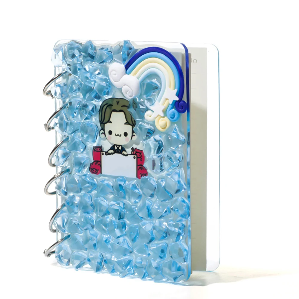 В комплект входит: 3 шт. силиконовый чехол для блокнота, полимерные формы (A4, A5 и A7), 3 шт. силиконовые формы для закладок, 6 шт. кольца для книги, 1 пара колец для переплета листьев, 20 одноразовых натуральных пальчиковых ботинок, 5 капельниц, 1 блестящий порошок с блестками (1 шт. случайного цвета)