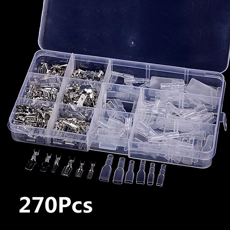 Это Мужской и Женский Лопата обжимной вывод разъем Ассорти комплект, включающий 2,8 мм/4,8 мм/6,3 мм типа с изолирующей рукава. Клеммы изготовлены из меди с хорошей проводимостью, широко используемой в соединении электрических проводов.