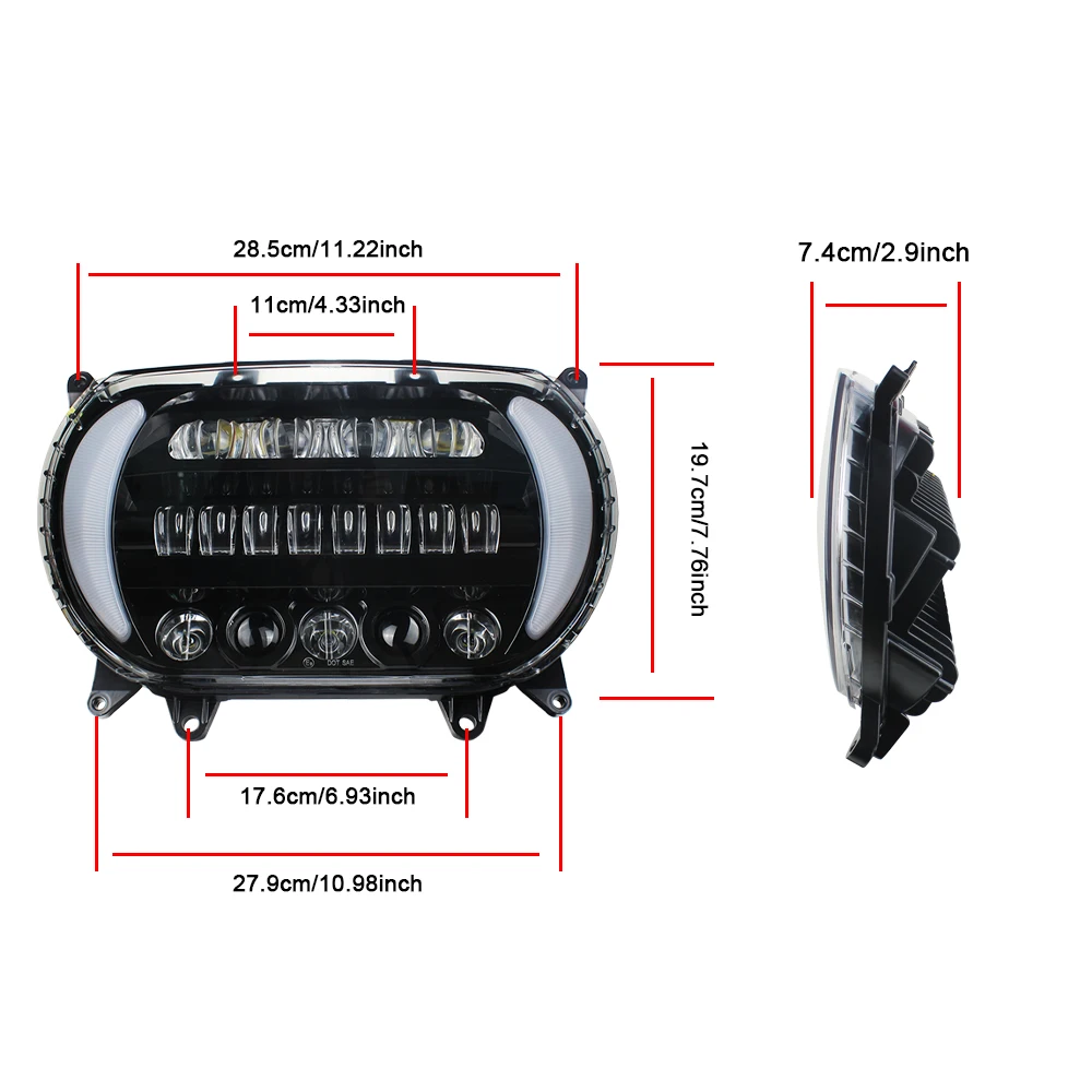 Параметры Тип: светодиодные противотуманные фары Напряжение: 10-32 В постоянного тока Светильник Тип: Ближний-Дальний свет/указатель поворота светильник Световой поток: Привет: 79 Вт, 7999лм; Низкий: 39 Вт, 3911лм DRL :4 Вт, 405лм Сигнал поворота: 2 Вт, 221лм Янтарный Материал: литой алюминий Зеркало Материал: ПК Температура: 6000k Срок службы: 50000 часов Цвет: черный/хром Сигнал указателя поворота: Янтарный Посылка включает в себя: 1 комплект светодиодный светильник