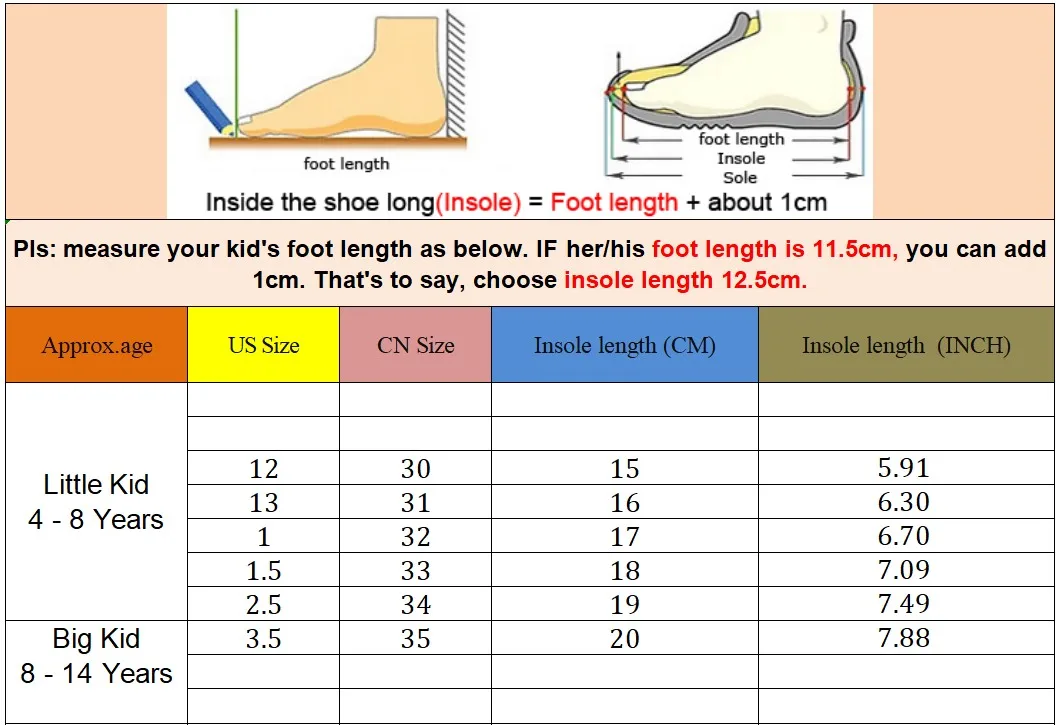 2..Что касается размера, Измерьте длину стопы ребенка в см или дюймах + 1 см или 0,03937 дюймаChВыберите соответствующий американский размер, спасибо.