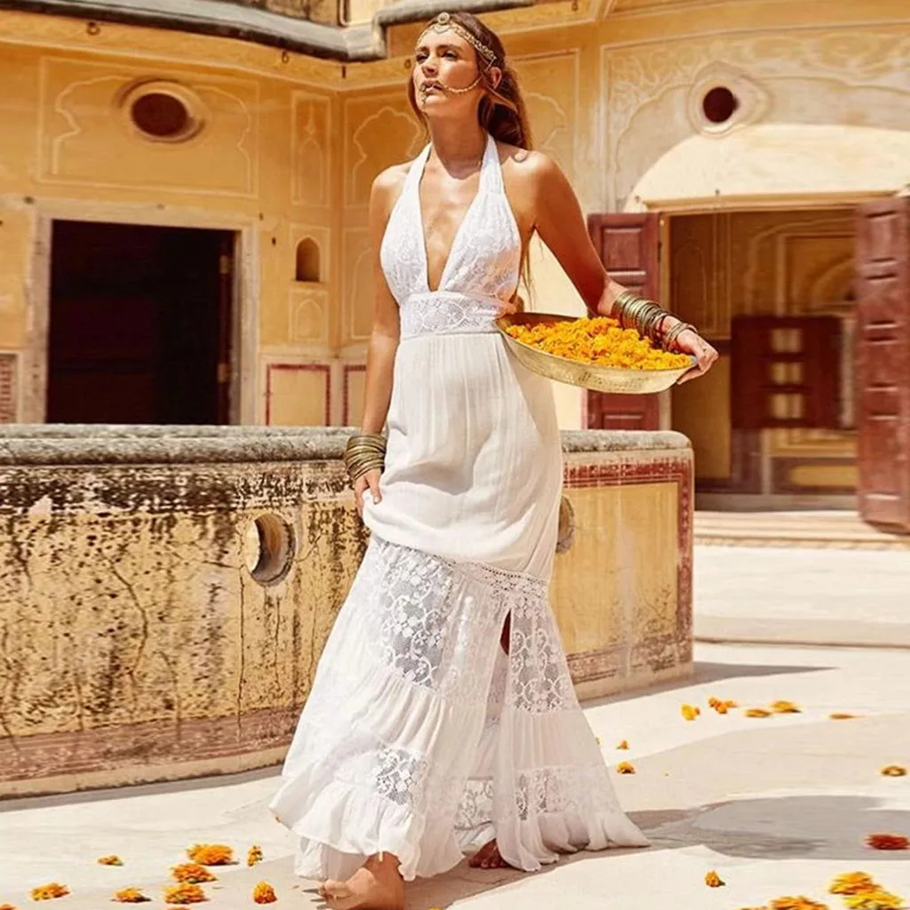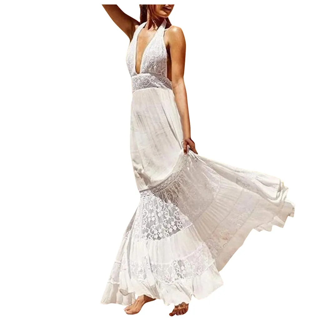 3.VШеи,С открытой спиной; кружевное лоскутное платье; пляжное платье с лямкой на шее; очаровательное и привлекательное. Простой, но модный. Свободный крой. Предупреждения Кожа Повреждения, когда вы играете на пляже.