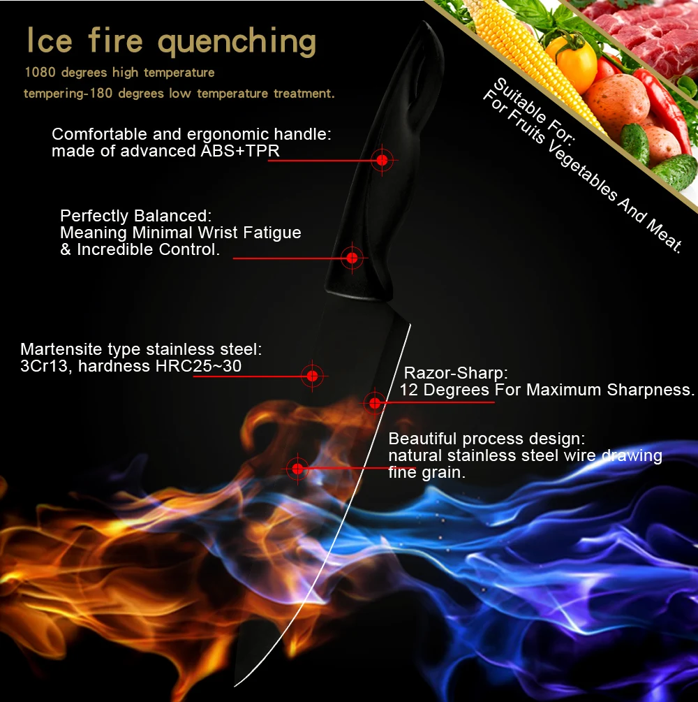 Эти кухонные ножи прочные и практичные, изготовлены из нержавеющей стали 3CR1 3 и ручки из нержавеющей стали. Предназначено для высококачественной посуды и станет вашим лучшим выбором для кухни.