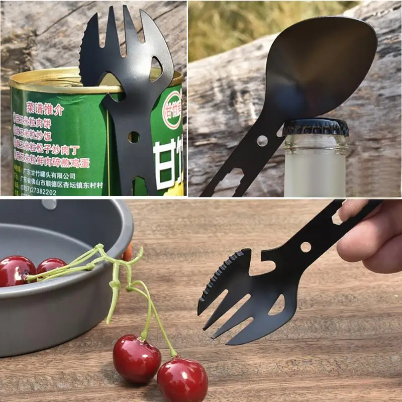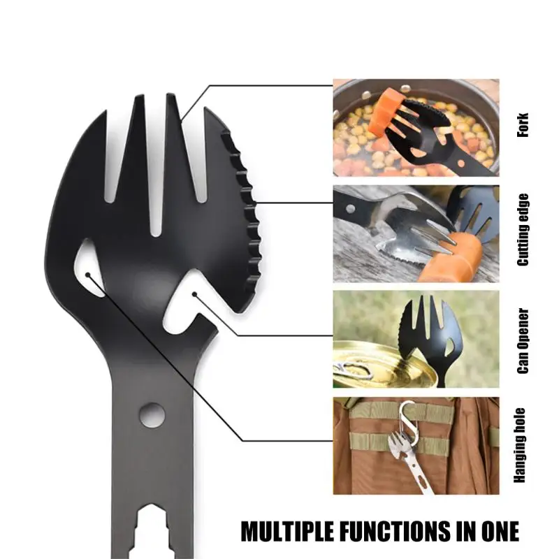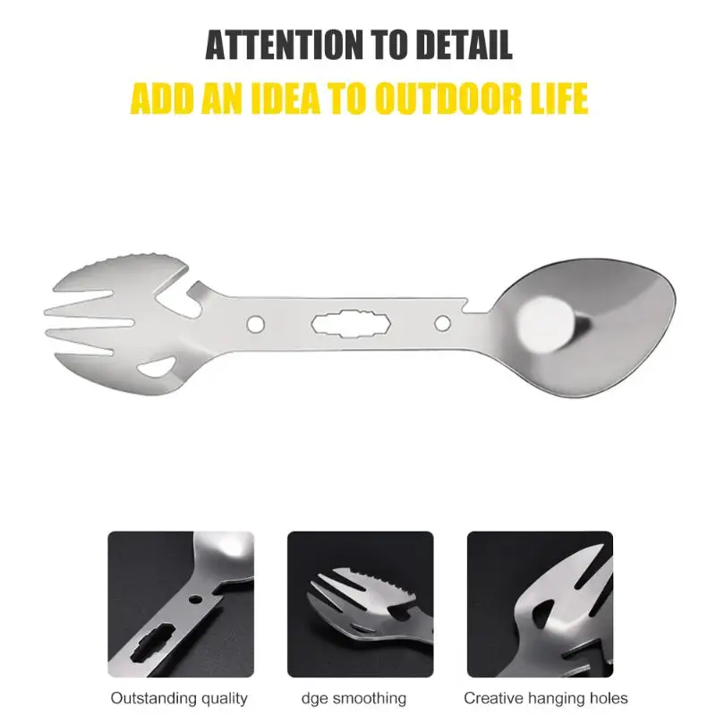 Многофункциональная нержавеющая сталь EDC Spork вилка ложка открывалка для бутылок лезвие гаечный ключ для пикника на открытом воздухе выживания кемпинга