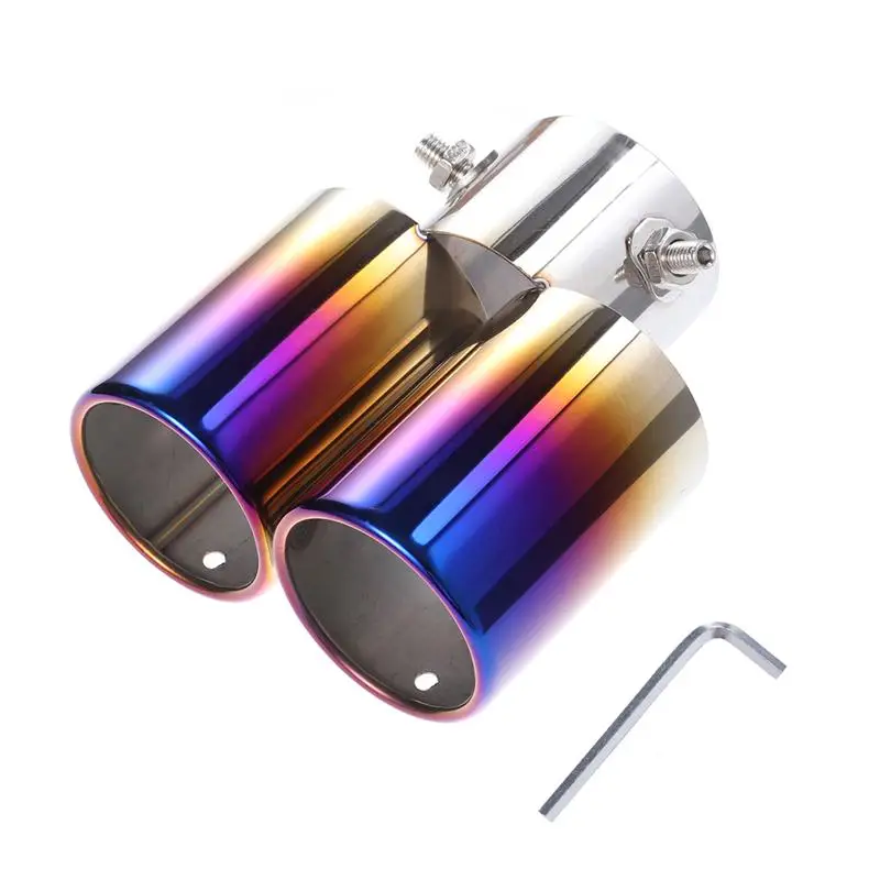 1 x красочные двойные выходы из нержавеющей стали выхлопной трубы глушитель выхлопной трубы наконечник крышки