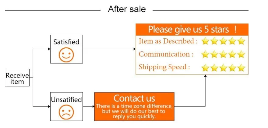 Мы будем нести потерю, если посылка утеряна или товар, брошеный на пути доставки, поэтому, пожалуйста, свяжитесь с нами, если это произошло, если вы получили неправильный товар или вам не понравился товар, или вы получили дефектные продукты, пожалуйста, немедленно свяжитесь с нами.