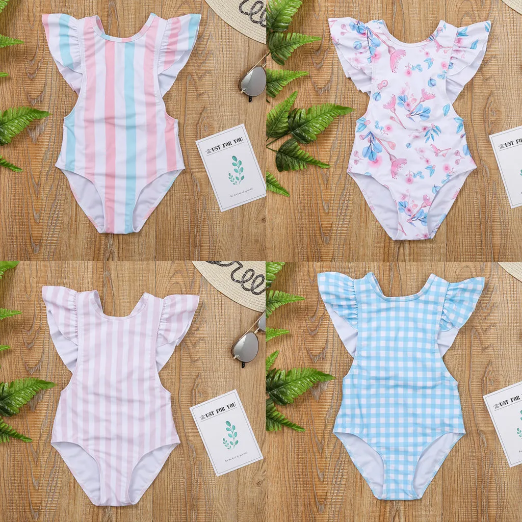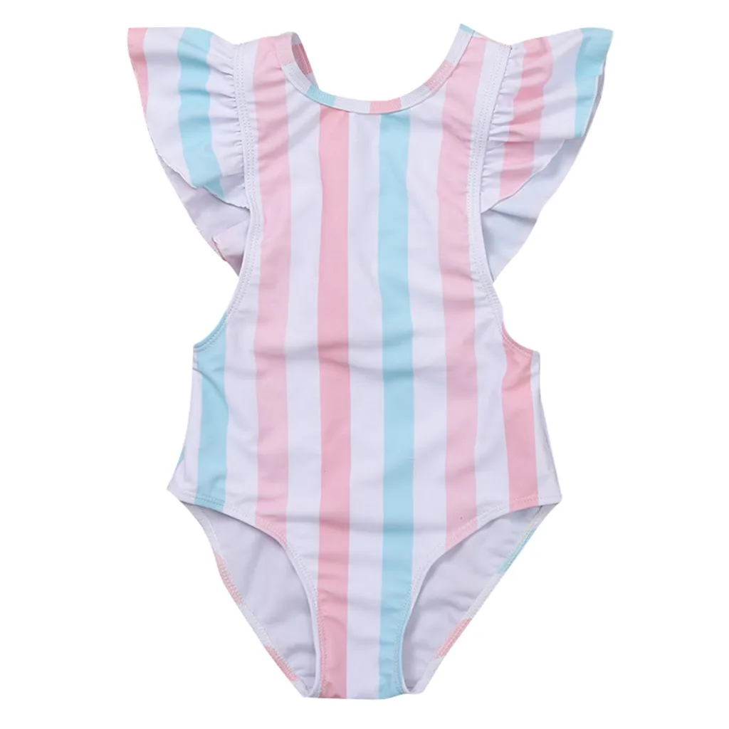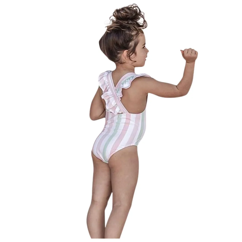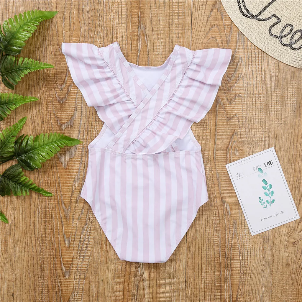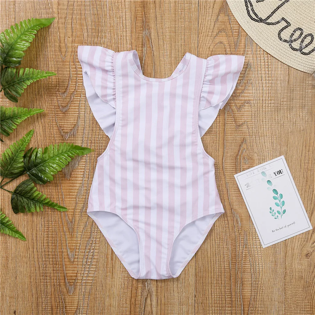 Полосатый купальник-бикини для маленьких девочек, купальный костюм, пляжная одежда