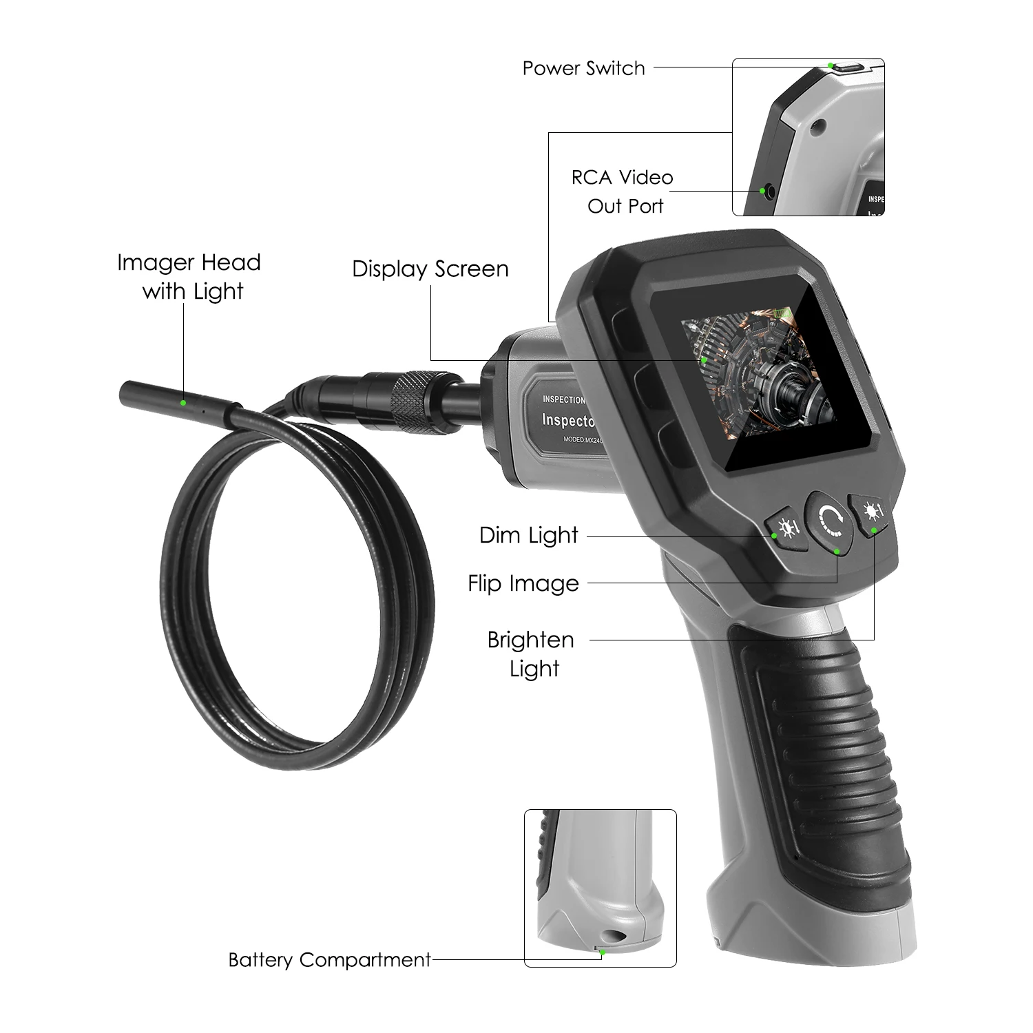 Уровень водонепроницаемости IP67: камера и трубка были водонепроницаемы IP67, предназначены для Подводного Осмотра (Не погружайте ручку камеры или экран дисплея в воду).