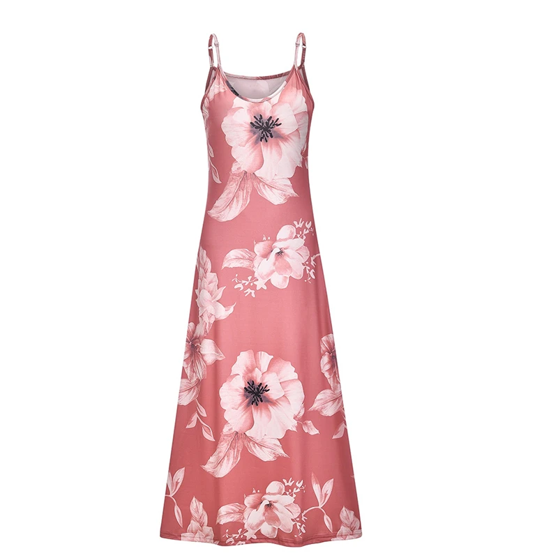 Женское богемное платье с бретельками на шее, длинное пляжное платье без рукавов с цветочным принтом, сарафан