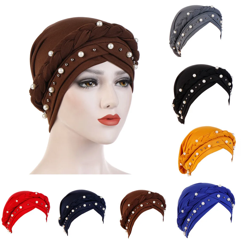 Для женщин Бисер Индия шляпа мусульманских рюшами Хемо шапочка-тюрбан Обёрточная бумага Кепки