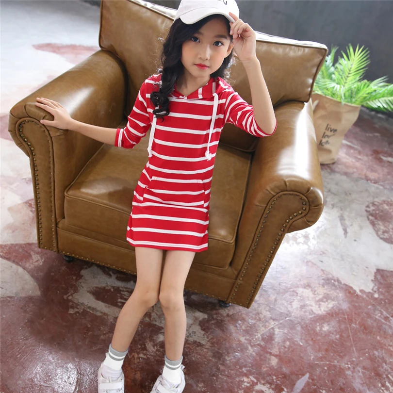Платья с длинными рукавами для маленьких девочек милое мини-платье в полоску выше колена с капюшоном обтягивающее Повседневное платье-джемпер для девочек осеннее платье A40