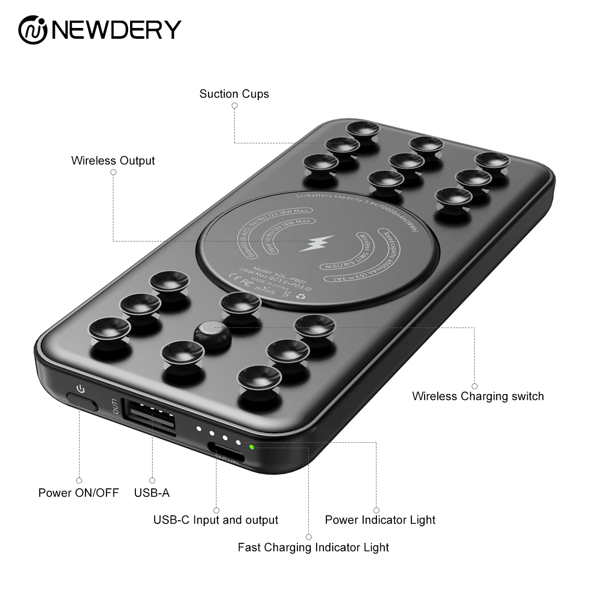 NEWDERY сильные присоски беспроводной банк питания для iphone X XS 11 18 Вт PD быстрая зарядка банк питания suppport 3 устройства зарядки