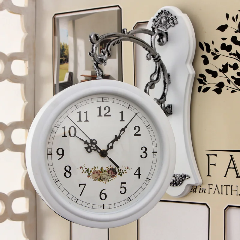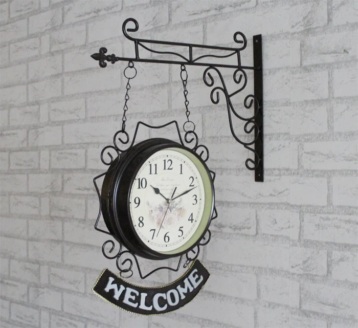 Двухсторонние настенные часы и часы в европейском стиле, кованые, железные, бесшумные, колокольчики, американские часы, простые, креативные, два-односторонние часы, большиеUS $49,68 /