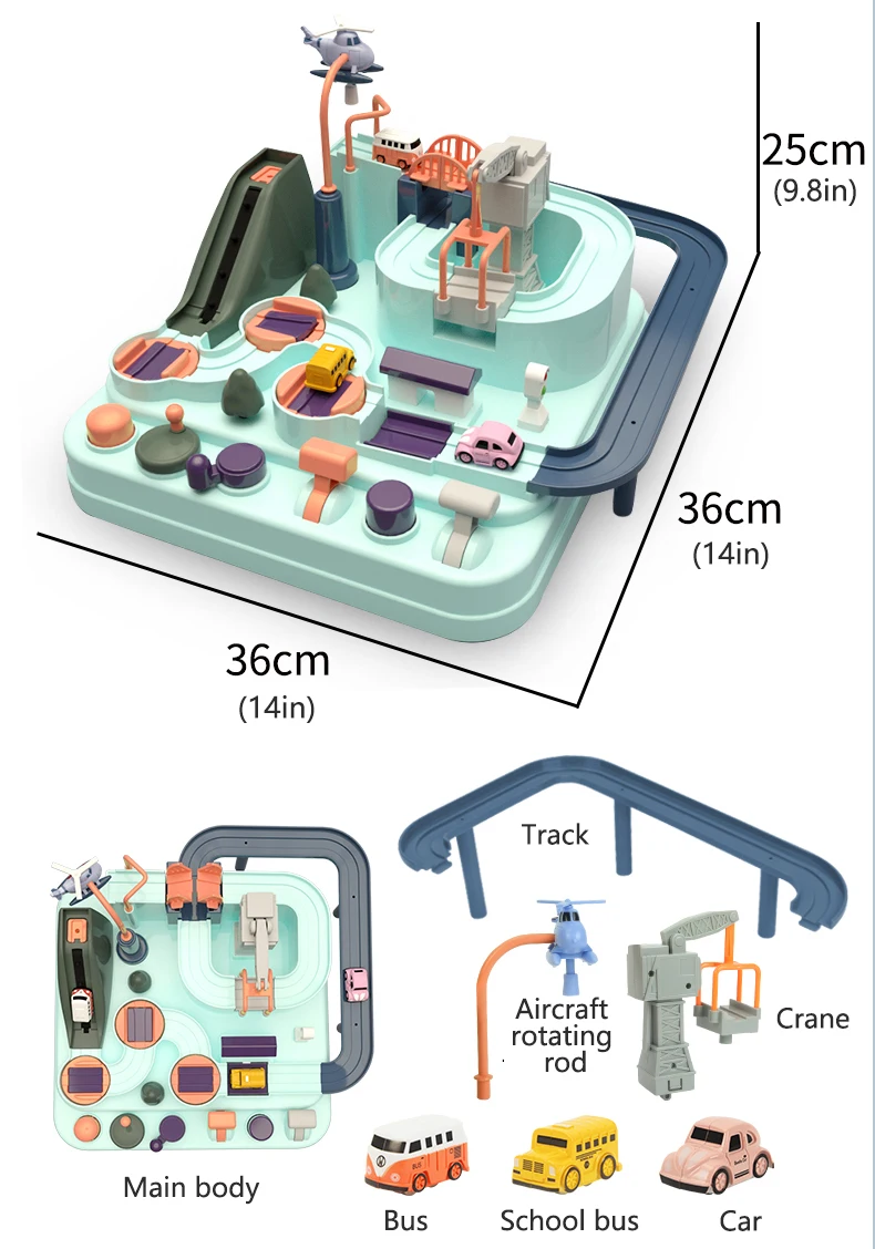 Theme:Transportation Age Range:Greater than 6 years old Product Category:Souptoys specifications:33*32.5*18cm Color:Macaron material:plastic Package Contents: 1* Railcar Toy 3* car Only the above package content, other products are not included. Note: Light shooting and different displays may cause the color of the item in the picture a little different from the real thing. The measurement allowed error is +/- 1-3cm.