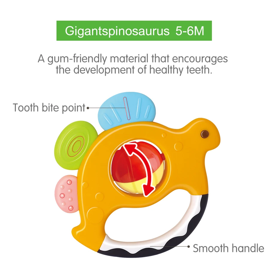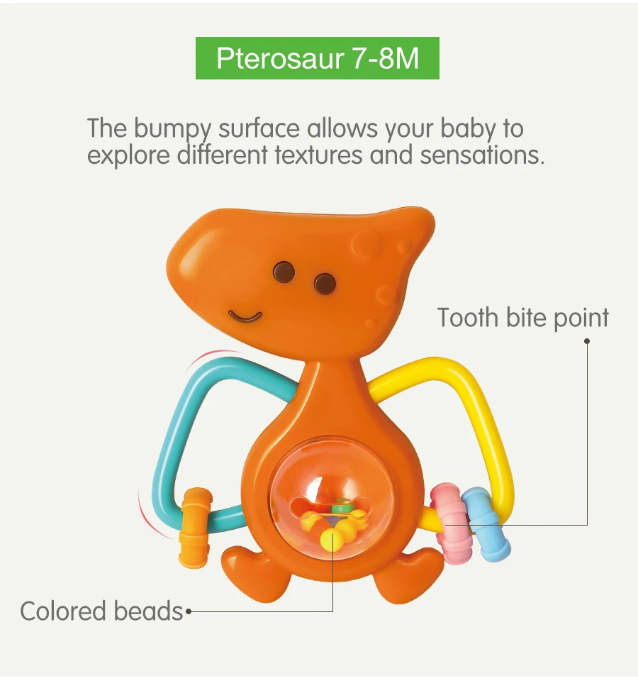 DescriptionBaby Teething Toy Set, [5 Pack] Soft Rattle Teething Toy for Pain Relief, BPA-Free Teether Dinosaur Rattles Toy Age-Specific Design for Infants and Toddlers, Colorful