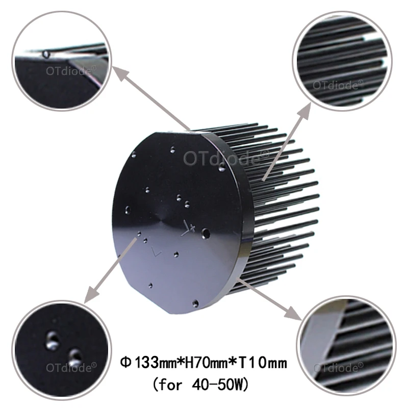 Круглый предварительно Просверленный светодиодный теплоотвод d133 мм, подходит для Cob cxb3590 Bridgelux V29 50-60 Вт, теплоотвод «сделай сам» в помещении