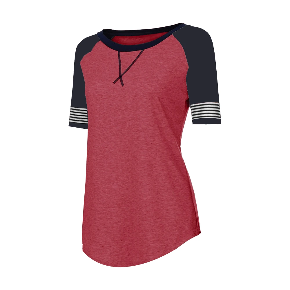 Женский пуловер с короткими рукавами в стиле пэчворк, Повседневная футболка с круглым вырезом и вышивкой, топы