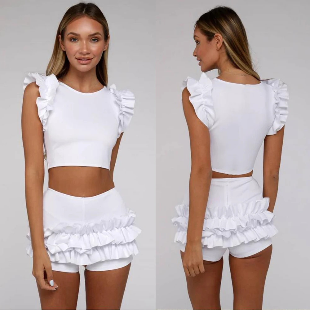 Женский купальный костюм из двух предметов, однотонный короткий топ с круглым вырезом + шорты с высокой талией