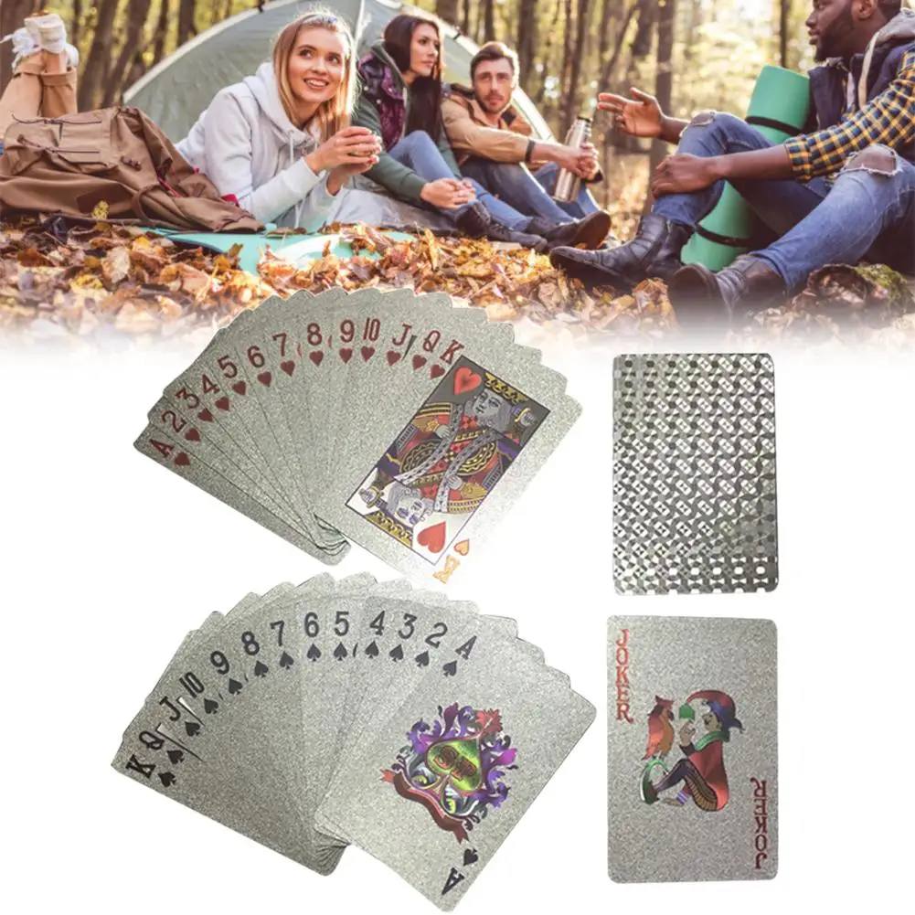 NEW Gold Foil Poker Plastic Waterproof Black Poker For Camping Beach Swimming Pool Plastic Gold Foil Poker Playing Cards #L4
