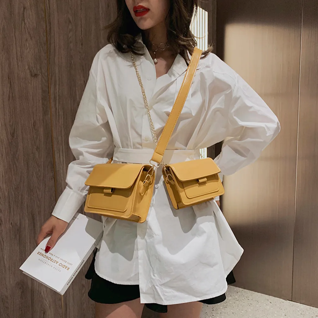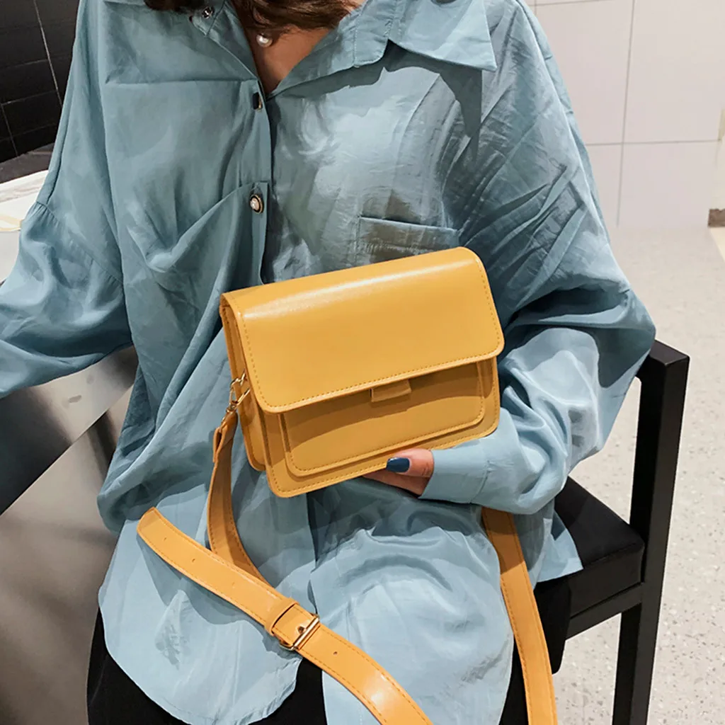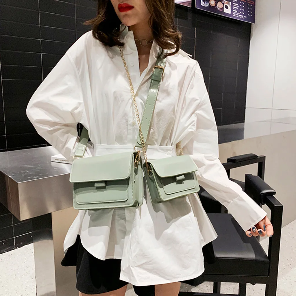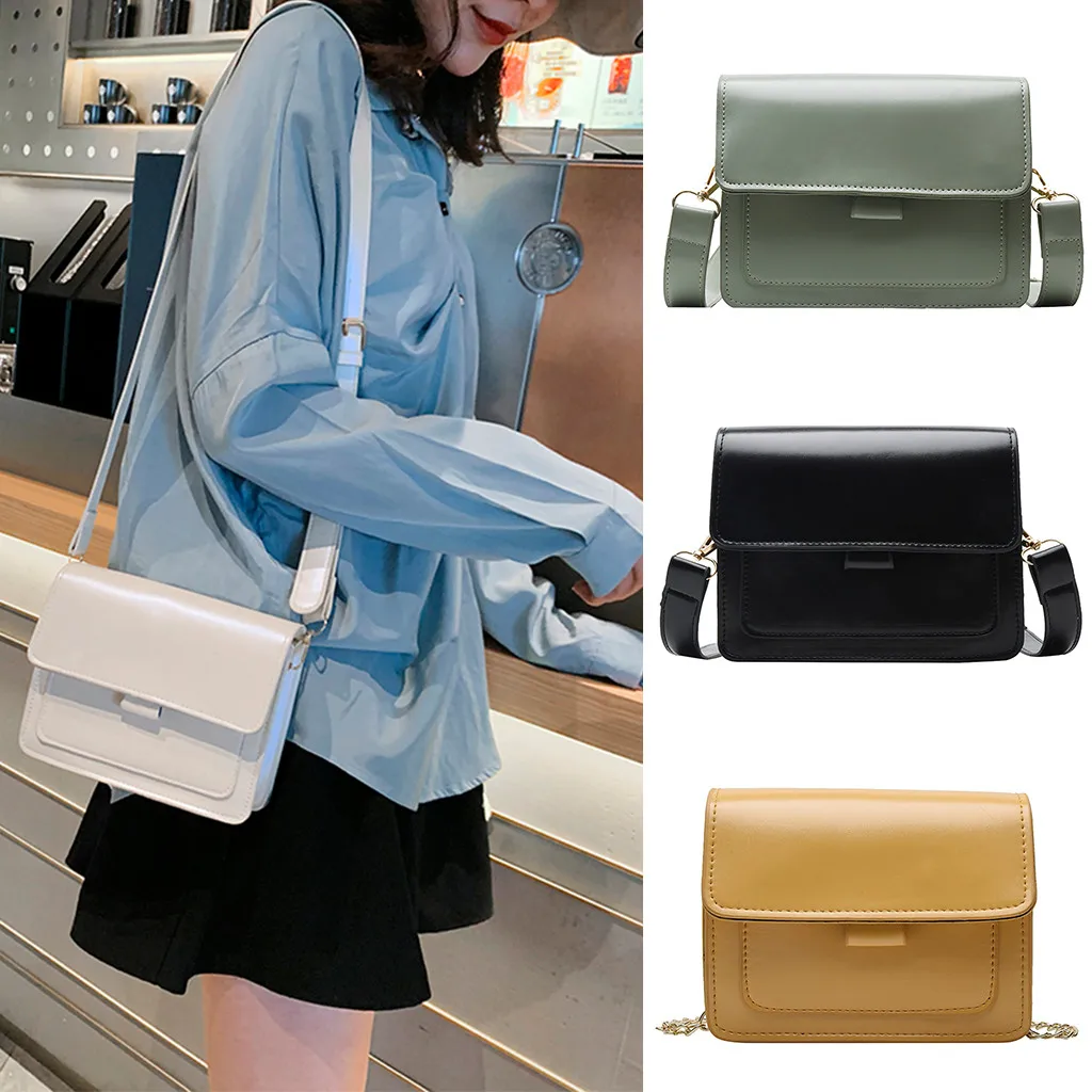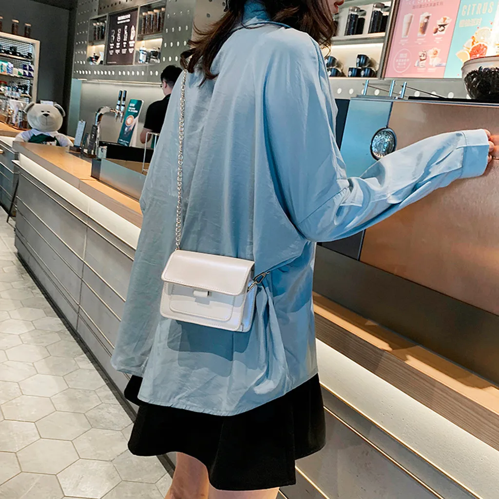 Женская сумка через плечо с блестками и цепочкой, кожаная цветная сумка-мессенджер, модная однотонная кожаная простая повседневная сумка