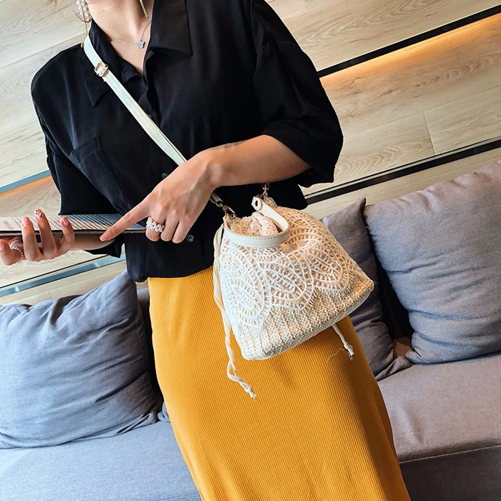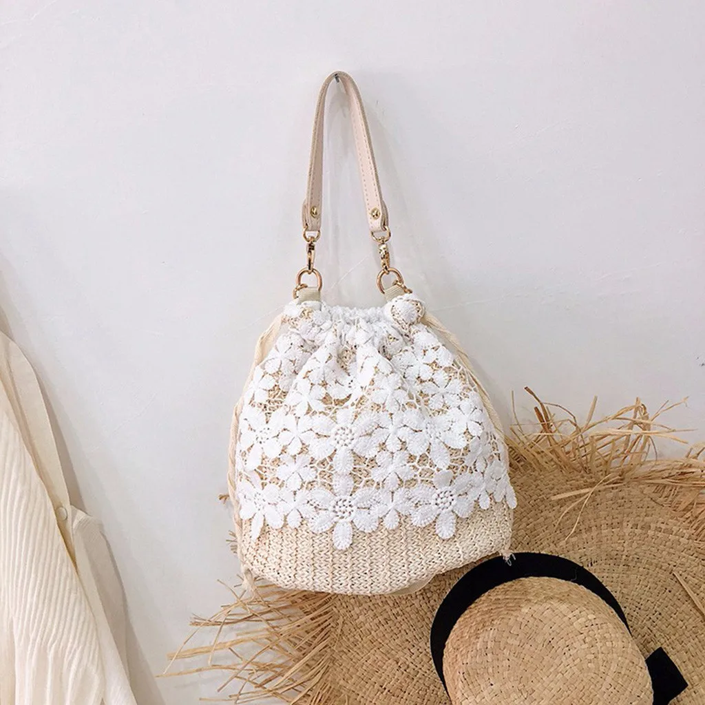 Женская сумка, сумка-мессенджер, мешковина, квадратная Соломенная Сумка-ведро, пляжный цветок, простой темперамент, Повседневная модная новинка