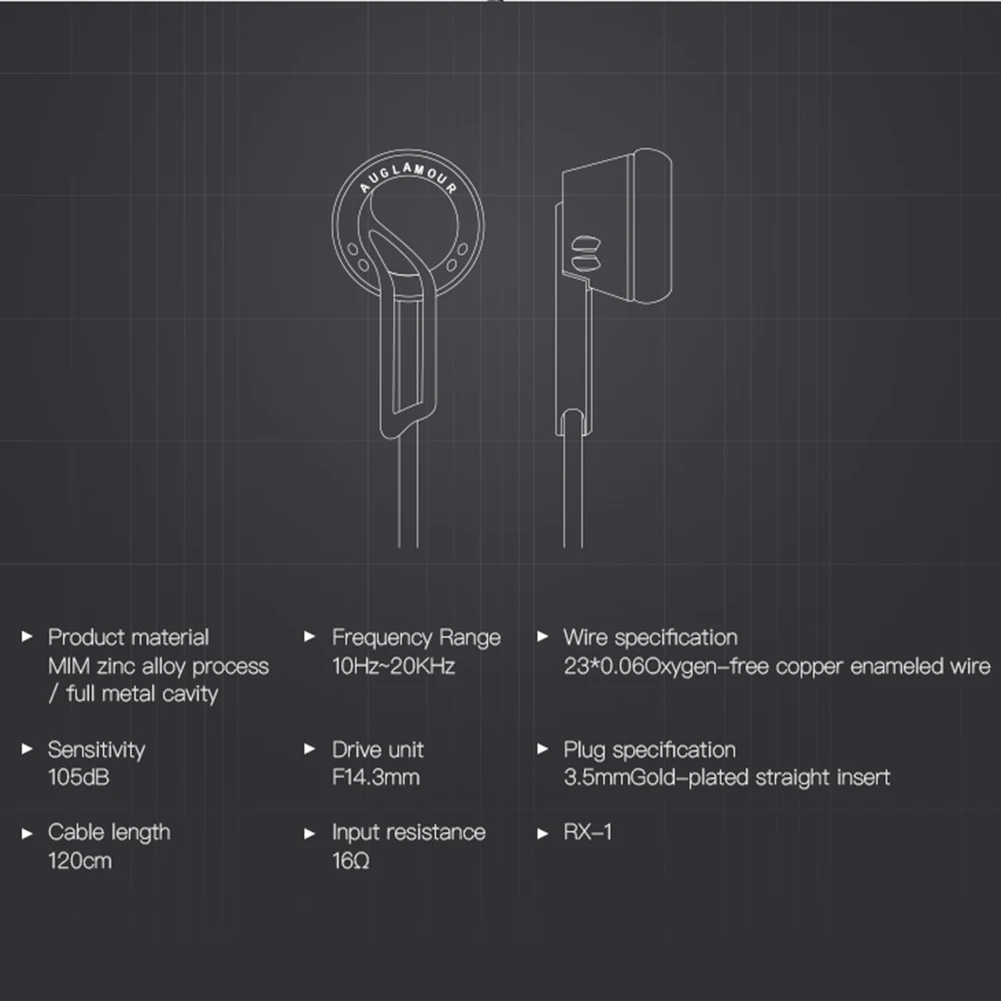 AUGLAMOUR RX-1 с плоской головкой наушники металлические наушники 3,5 мм проводные наушники спортивные наушники HiFi стерео наушники гарнитура С микрофоном