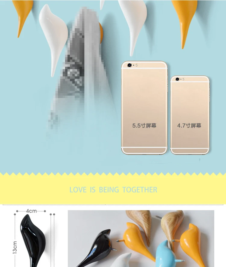 Креативные настенные крючки с изображением животных птиц, украшение для дома, полка для хранения древесины из смолы, вешалка для спальни, двери, вешалки для шляпы