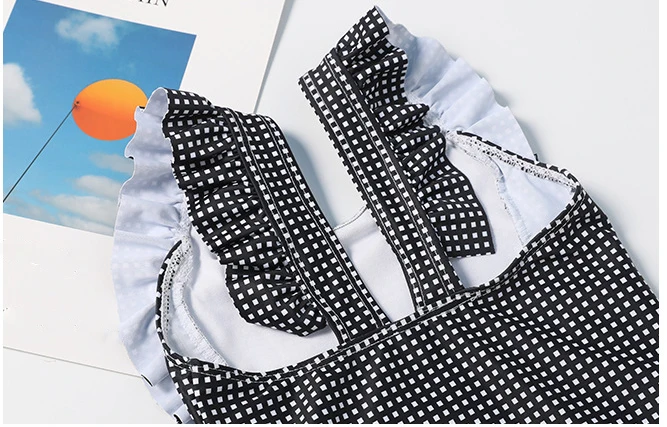 2020 новые милые купальники для девочек, цельный комплект, черная клетчатая детская пляжная одежда для серфинга, корейский стиль S01403K