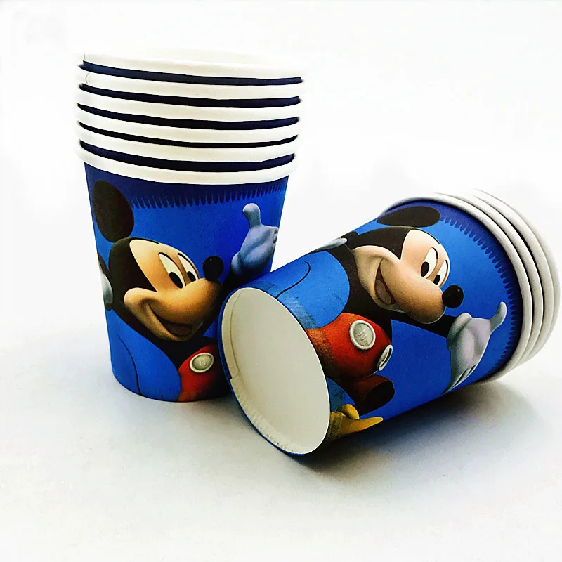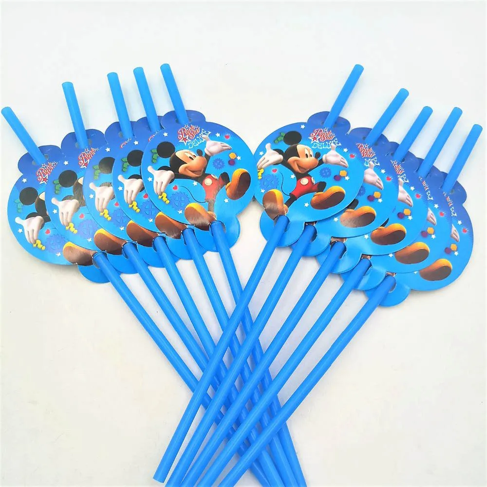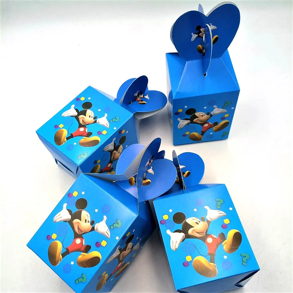 Вечерние принадлежности для Микки Мауса, украшения, скатерть, чашка, тарелка, соломенная салфетка, Подарочная сумка, свечи, конфета попкорн, коробка для детей на день рождения