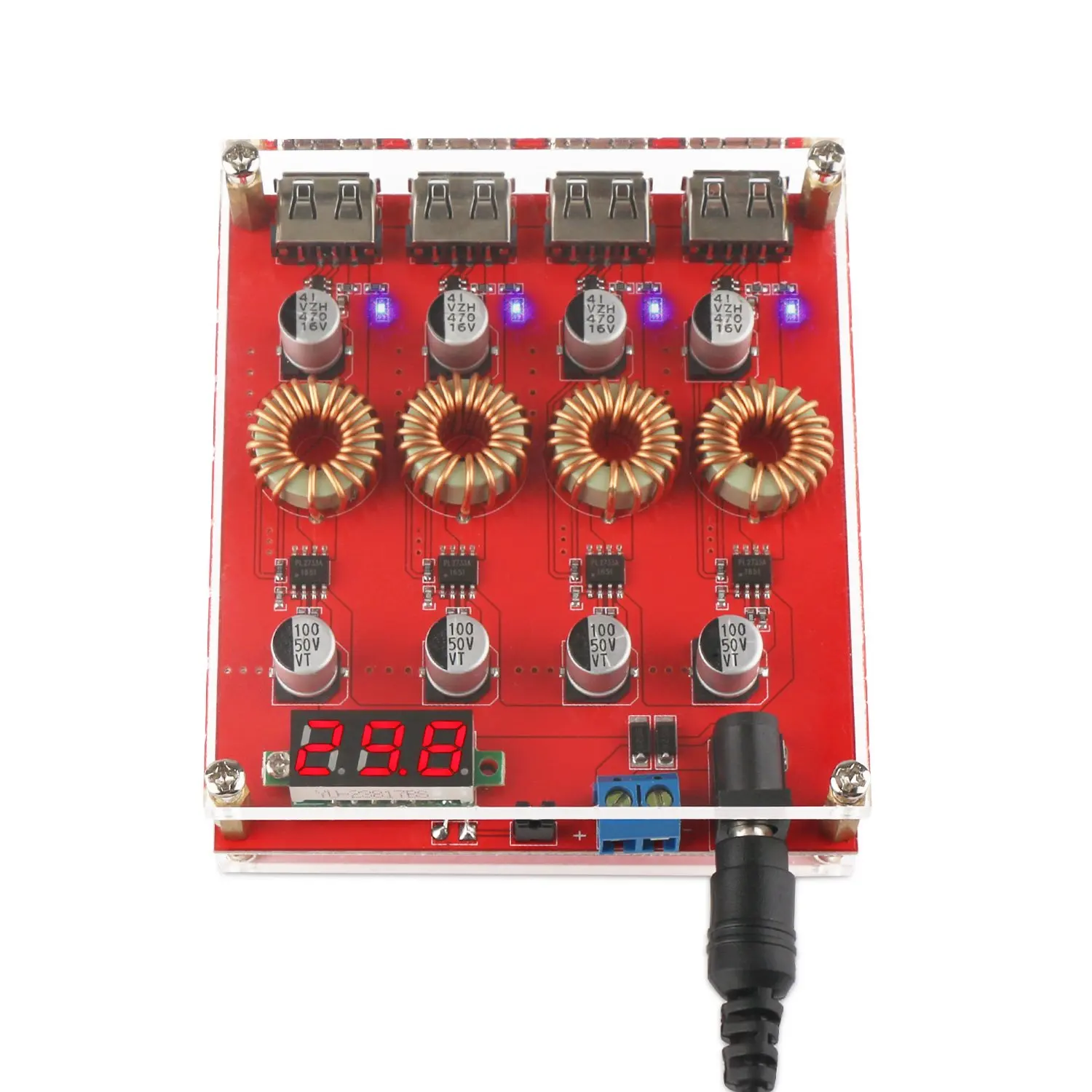 Buck Converter Voltage Regulator DC 8-30V to DC 5V Power Supply Transformer Charge Adapter Module 4 USB Port Support QC 3.0 2.0 Fast Charging