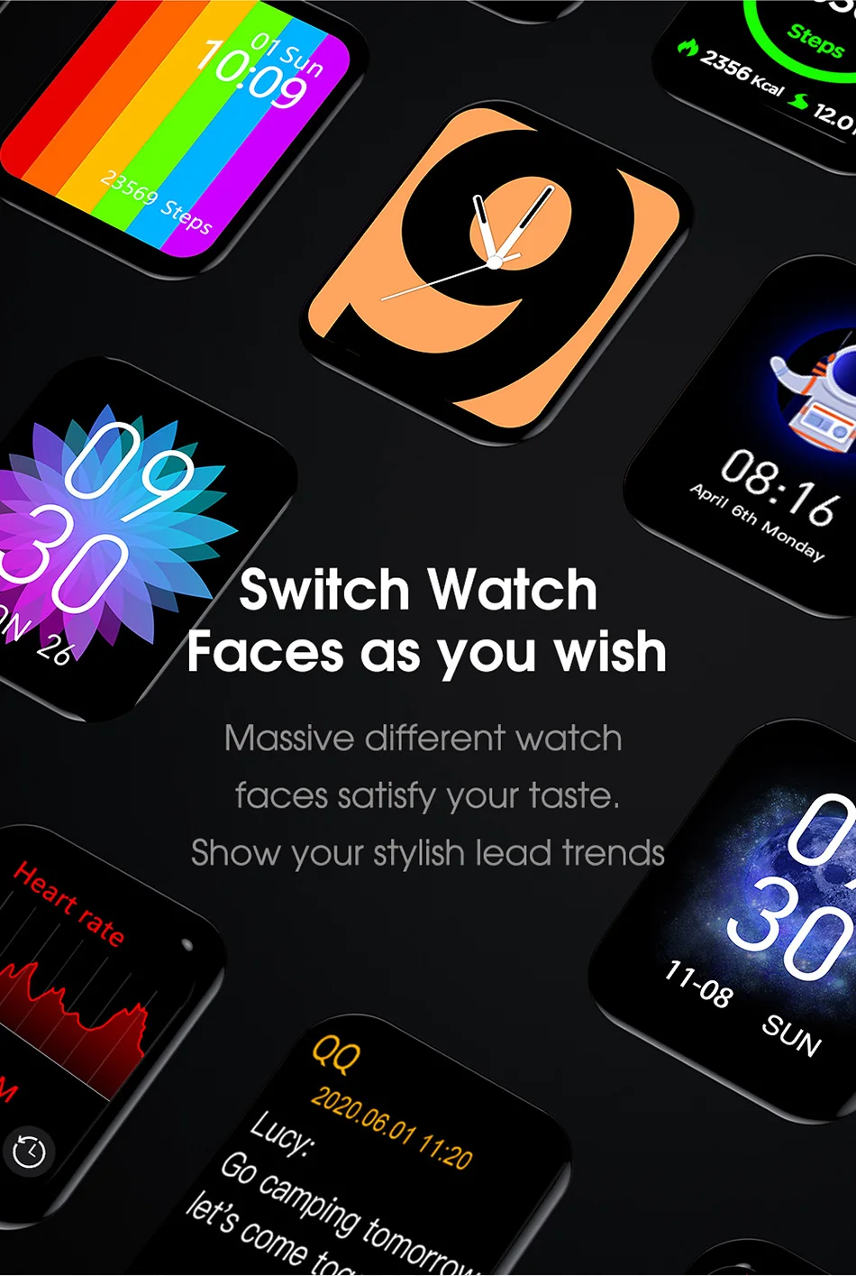 Поддержка звонков по Bluetooth, температуры тела, частоты сердечных сокращений, BP и ECG, шаги, меню в стиле Smart honeycomb, 9 tyoe меню, IP68 водонепроницаемый