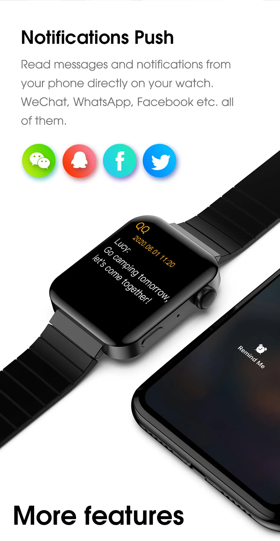 Bluetooth Push:SMS, WeChat, электронная почта, Facebook новости и другие уведомления приложений