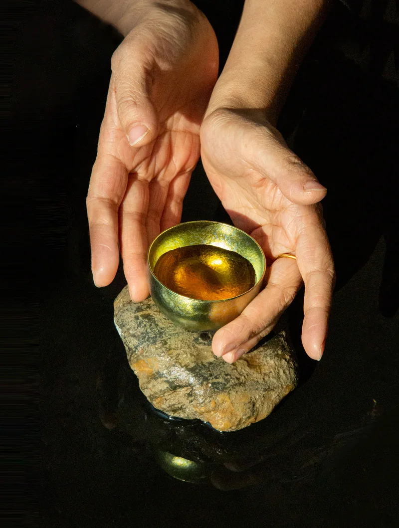 Золотая мини титановая чашка