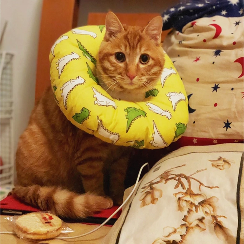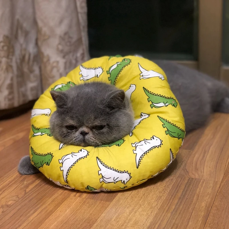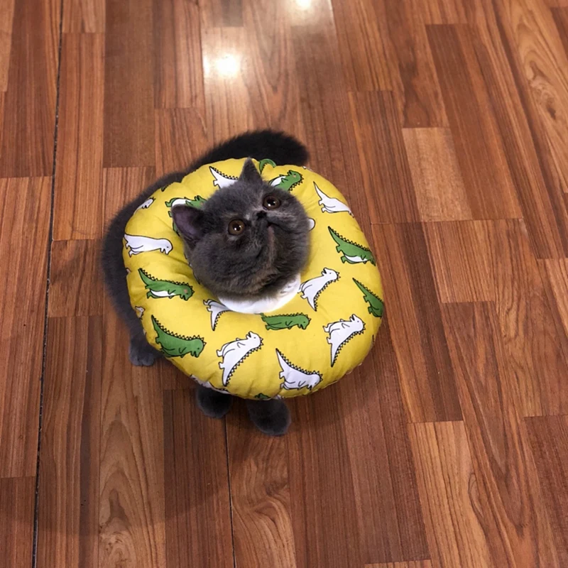 4. Прочный и устойчивый: высококачественный защитный воротник мягкий и моющийся, не повреждает и не царапает мебель. Вы можете вставить ежедневный ошейник питомца через внутреннее кольцо, чтобы стабилизировать его.
